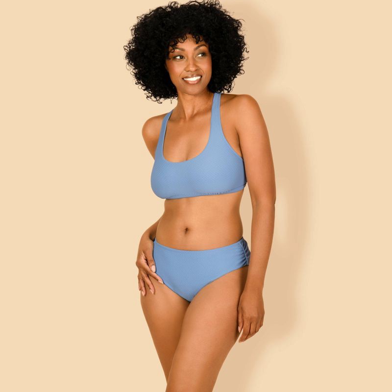 Lands' End Women's Textured Shirred Mid-Rise Bottom - Blue S