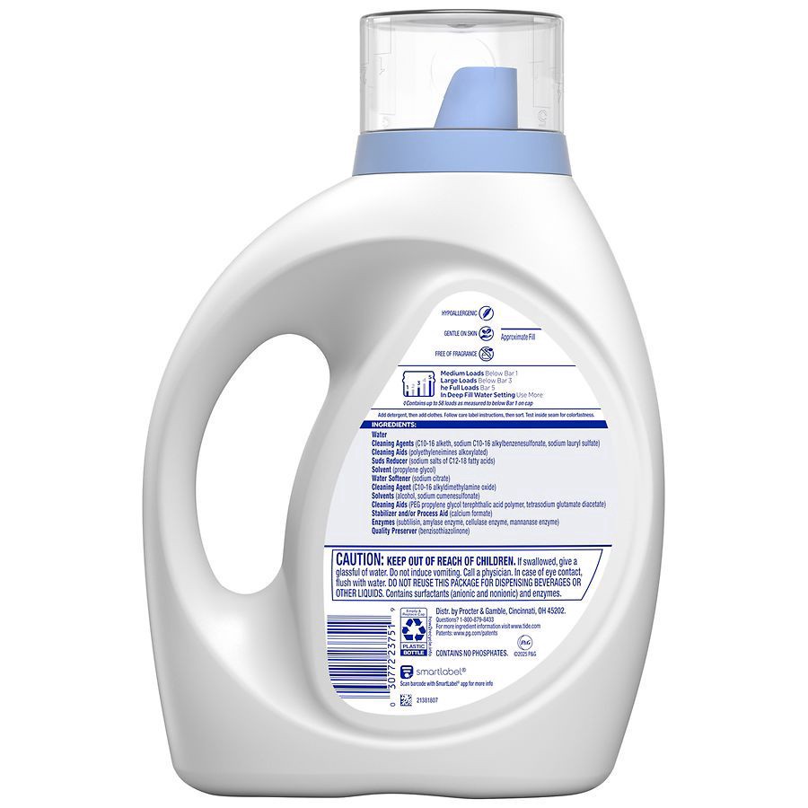 Tide Free & Gentle Laundry Detergent Liquid, Trusted Gentle Laundry Soap Unscented, 58 Loads