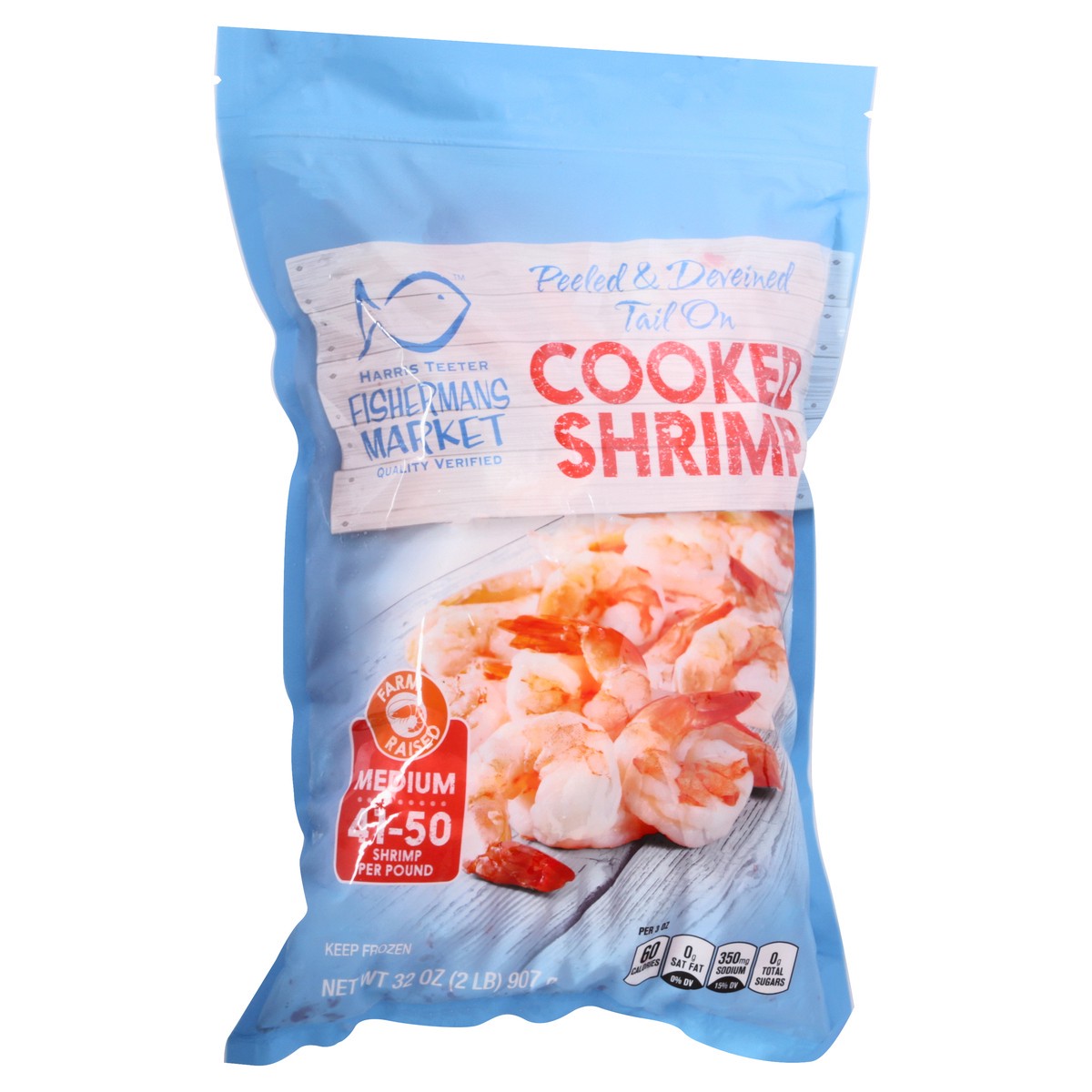 Per 3 oz: 60 calories; 0 g sat fat (0% DV); 350 mg sodium 15% DV; 0 g total sugars. 41-50 shrimp per pound. Quality verified. Peeled & deveined tail on. Farm raised. Yourdoubleguarantee: If you are no…