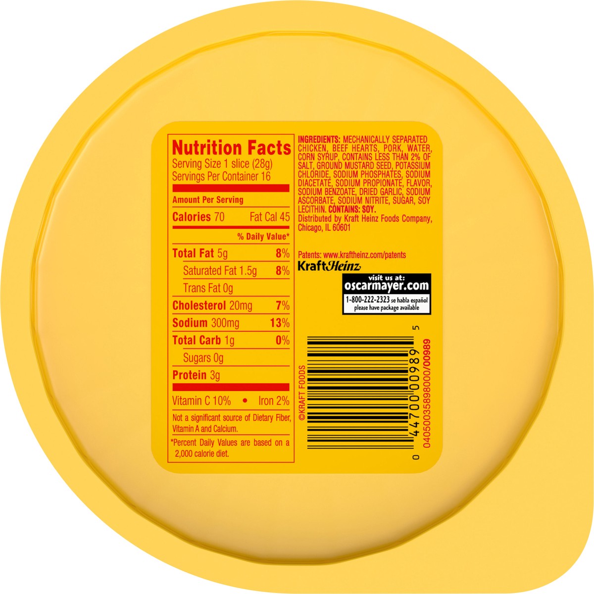 Made with Chicken & Beef, Pork Added Inspected for wholesomeness by U.S. Department of Agriculture. www.oscarmayer.com 1-800-222-2323 Made in USA