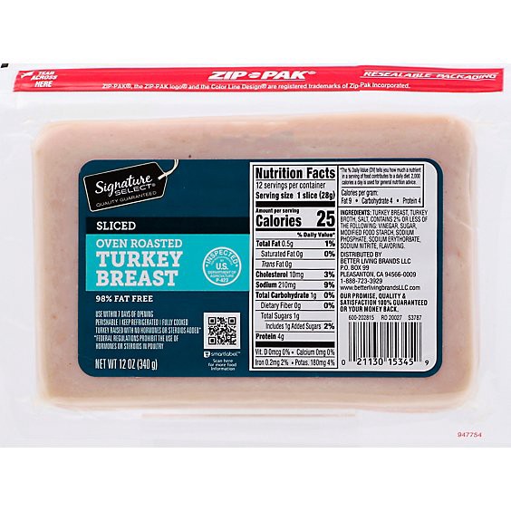 Signature Select Turkey Breast Oven Roasted 97% Fat Free - 12 Oz