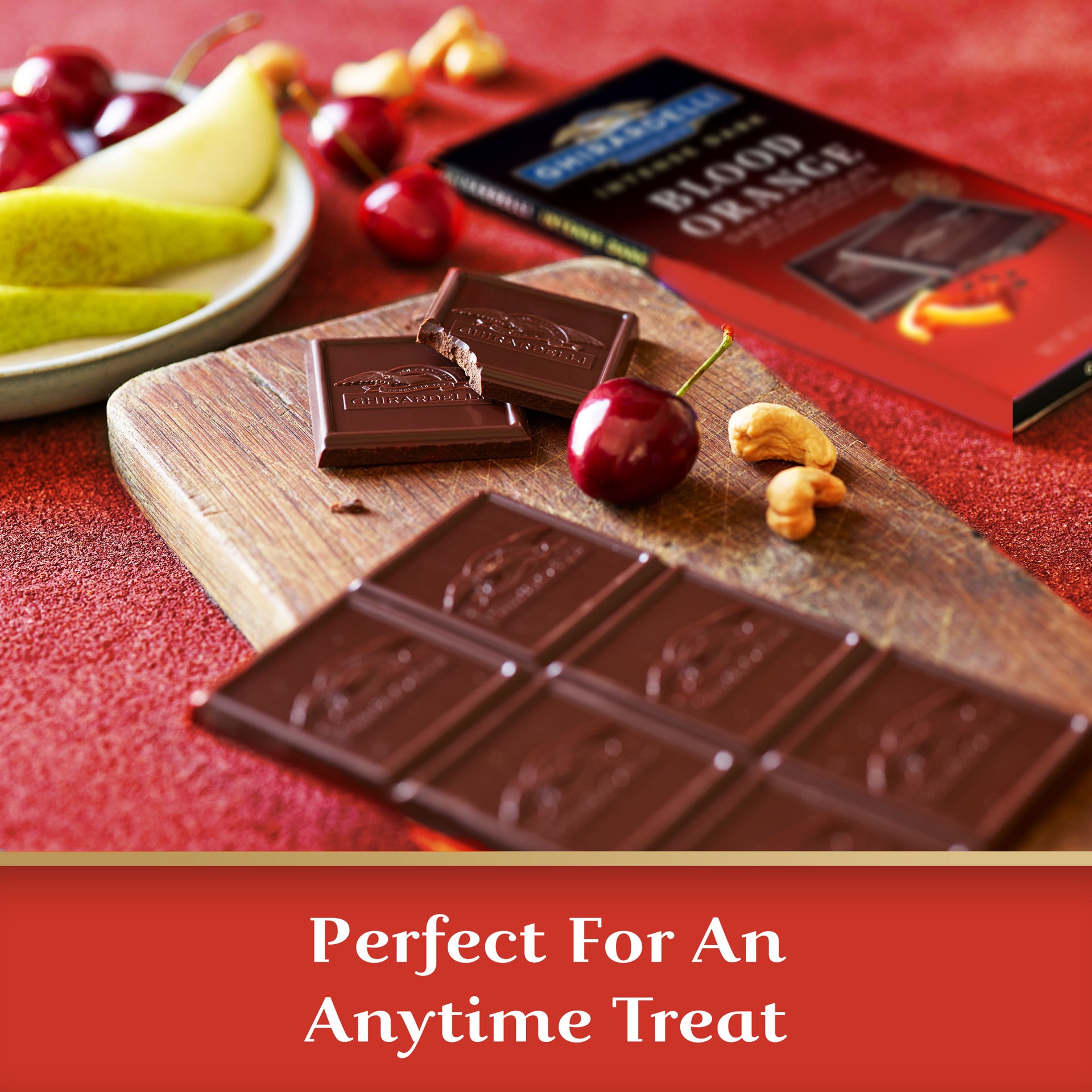 Each intensely delicious square of the GHIRARDELLI Intense Dark Blood Orange Chocolate Bar caters to your senses. Indulge in the rich chocolate intensity after dinner, or serve GHIRARDELLI Intense Dar…