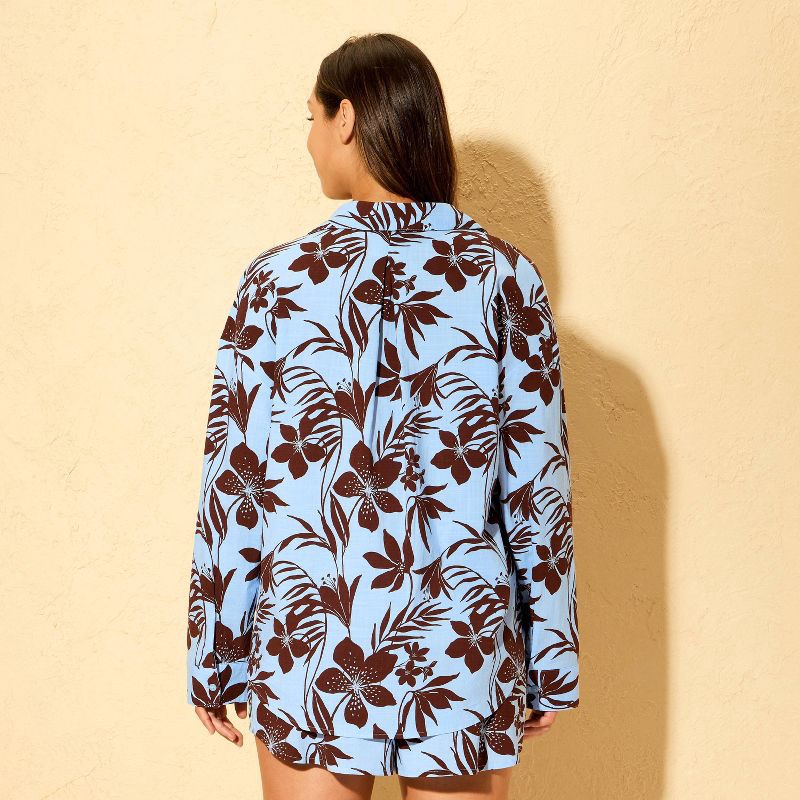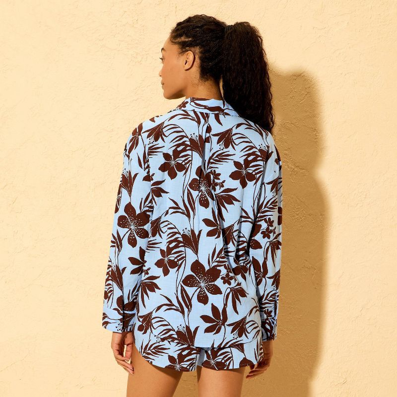 Women's Swim Floral Button Front Cover Up Shirt - Shade & Shore™ Blue L