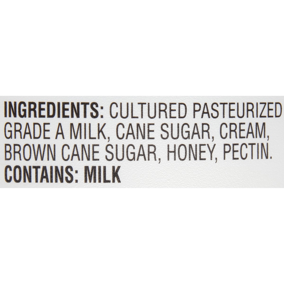Cultured Pasteurized Grade A Milk, Cane Sugar, Cream, Brown Cane Sugar, Honey, Pectin. Contains 7 Live and Active Cultures (S. Thermophilus, B, Lactis, L. Acidophilus, L. Casei, L, Rhamnosus, Lactobac…