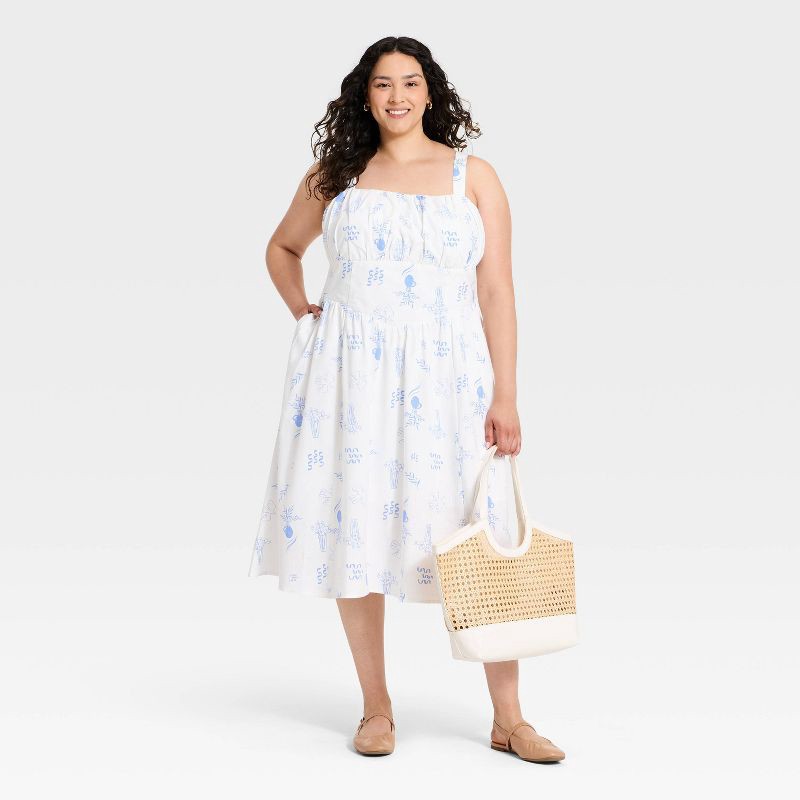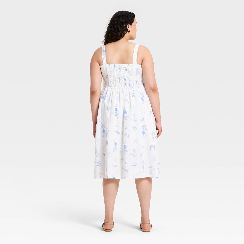 Bring easy-breezy elegance to your wardrobe with this Midi A-Line Dress from Ava & Viv™. This sleeveless pullover features a square neckline with wide straps, a smocked back and a V-yoke front waist f…