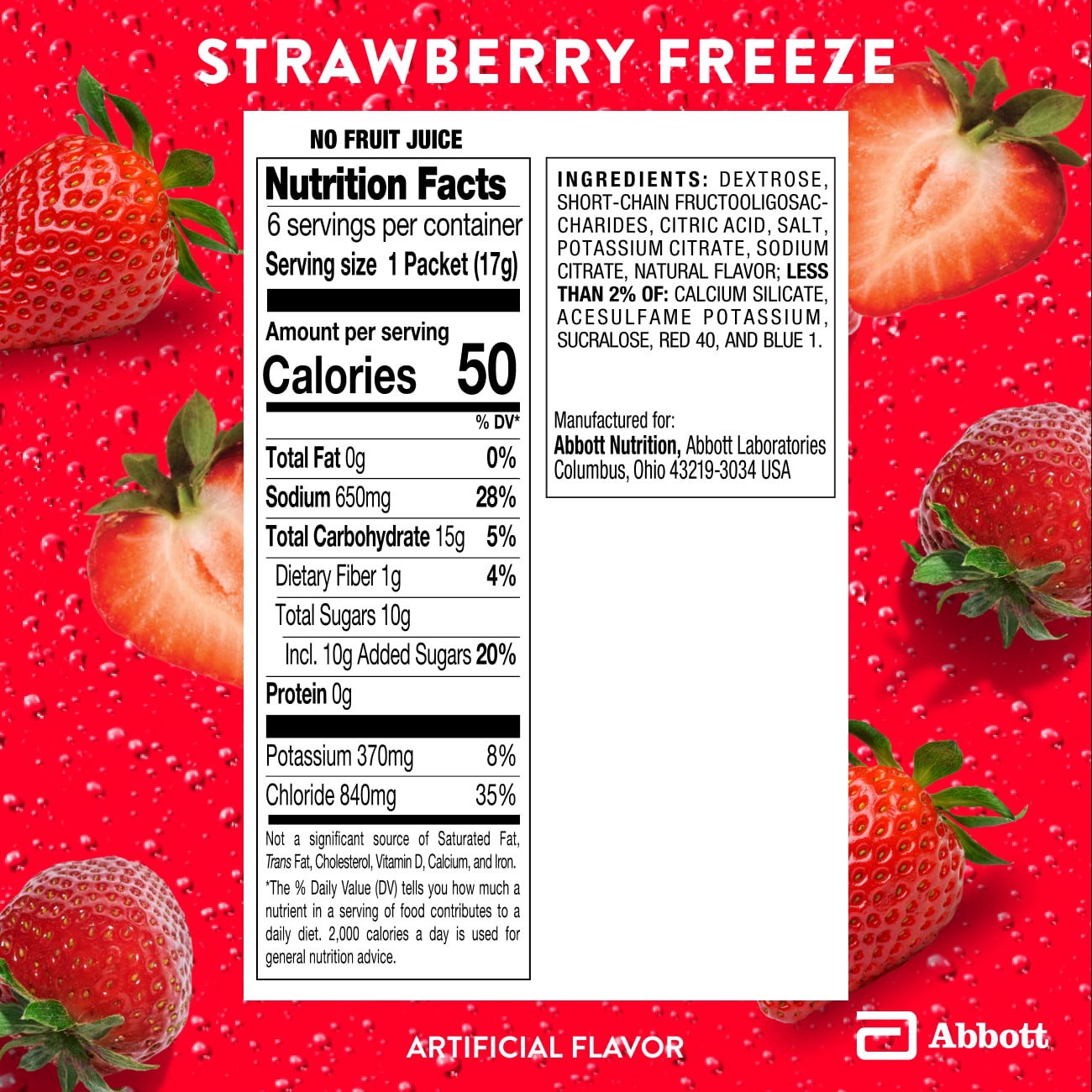 Anhydrous Dextrose, Short-chain Fructooligosaccharides, Citric Acid, Salt, Potassium Citrate, Sodium Citrate, Natural Flavor. Less than 2% of: Calcium Silicate, Acesulfame Potassium, Sucralose, Red 40…
