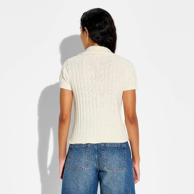 Women's Short Sleeve Cable Polo Pullover Sweater - Wild Fable™ Cream XXS