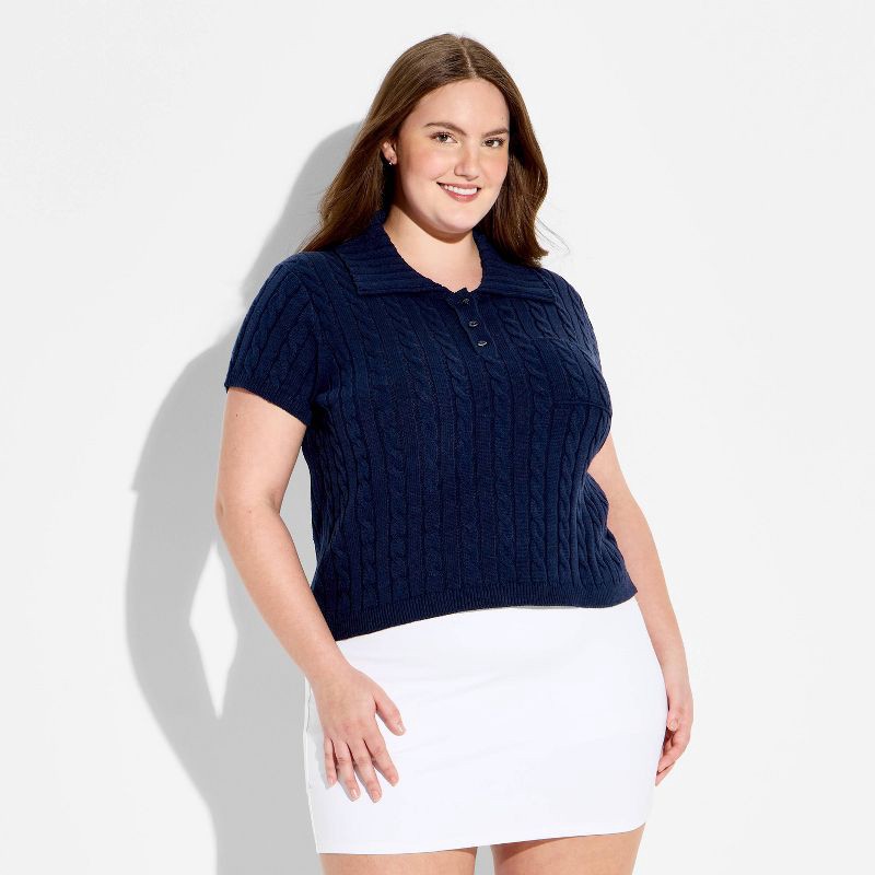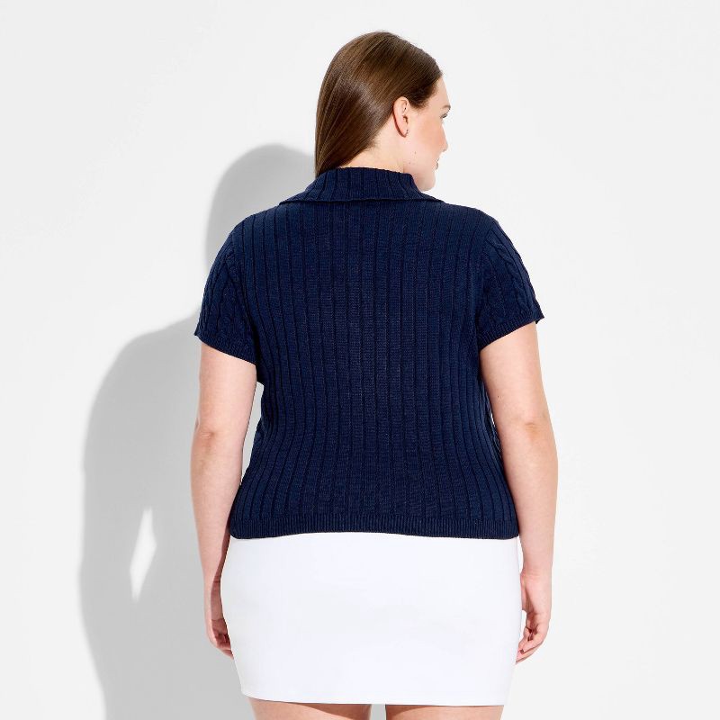 Women's Short Sleeve Cable Polo Pullover Sweater - Wild Fable™ Navy Blue XXL