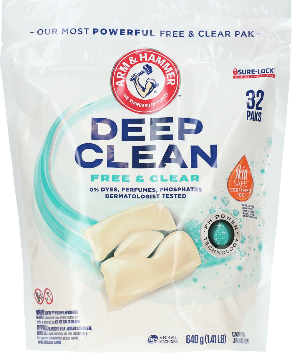 Get a deep cleaning detergent that is tough on stains and odors, and free of dyes and perfumes, with ARM & HAMMER Deep Clean Free & Clear Power Paks Concentrated Laundry Detergent. This powerful laund…