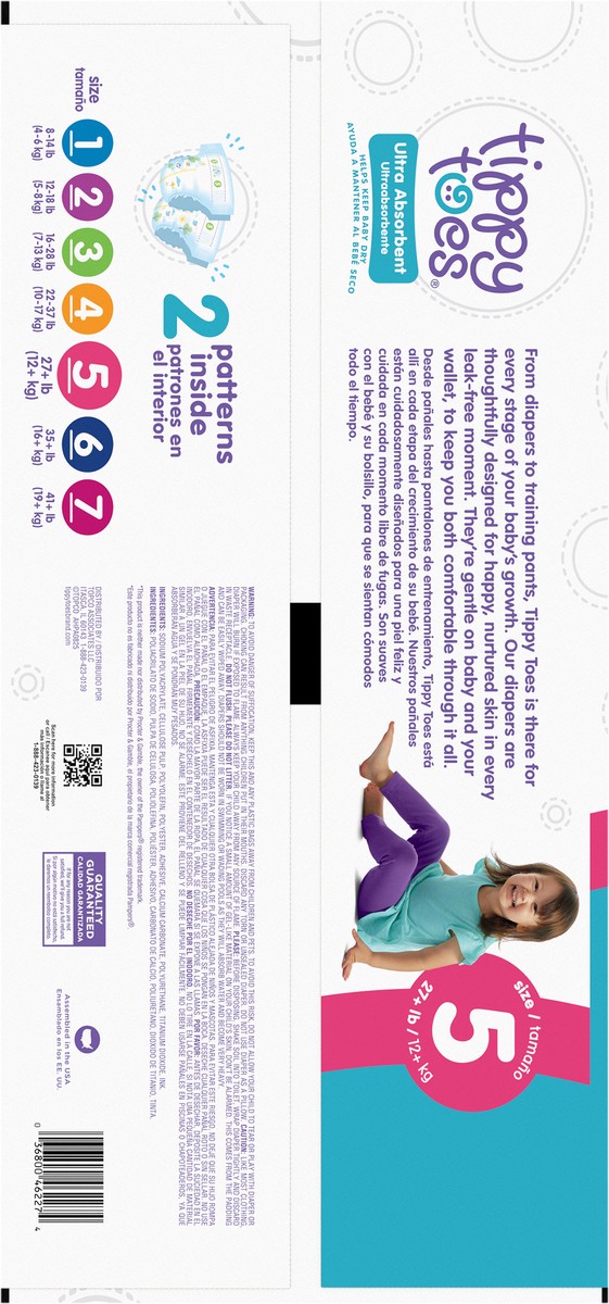 Tippy Toes Size 5 (27+ lb) Ultra Absorbent Diapers Giant Pack 112 ea