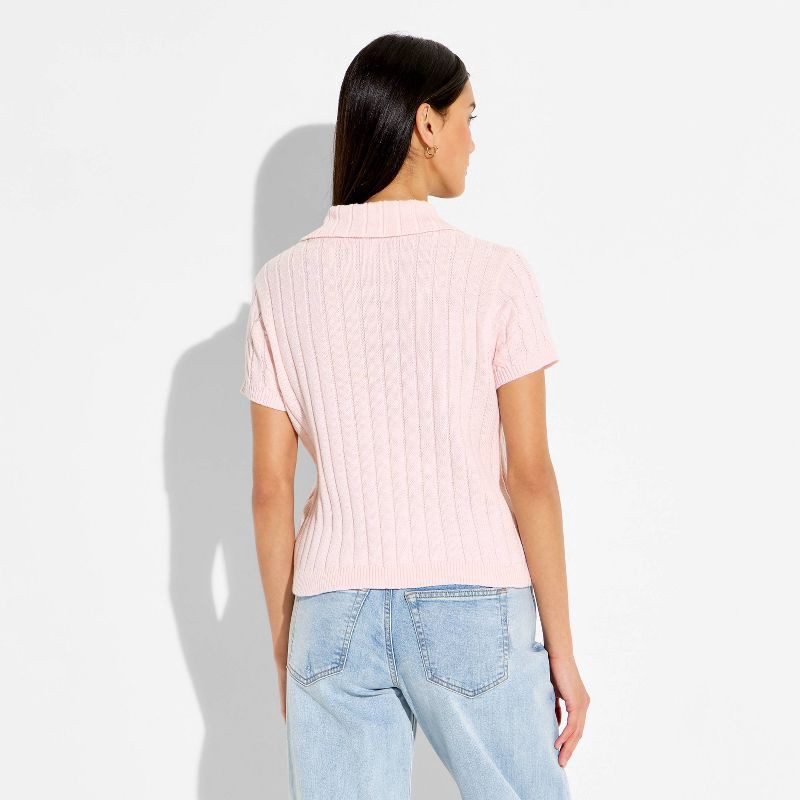 Women's Short Sleeve Cable Polo Pullover Sweater - Wild Fable™ Pink XL