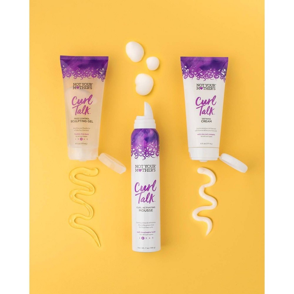 Not Your Mother's Curl Talk Sculpting Gel for curly hair keeps your look locked in place with a firm, flexible, flake-free hold. Curl Talk Frizz Control Sculpting Gel sculpts and shapes curls to activ…