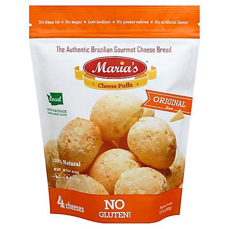 No artificial flavor. No sugar. Low sodium. No soy. No gluten! No trans fat. No preservatives. The authentic Brazilian Gourmet Cheese Bread. Local. New package same great taste. 100% natural. No yeast…