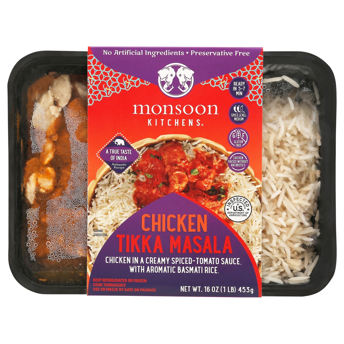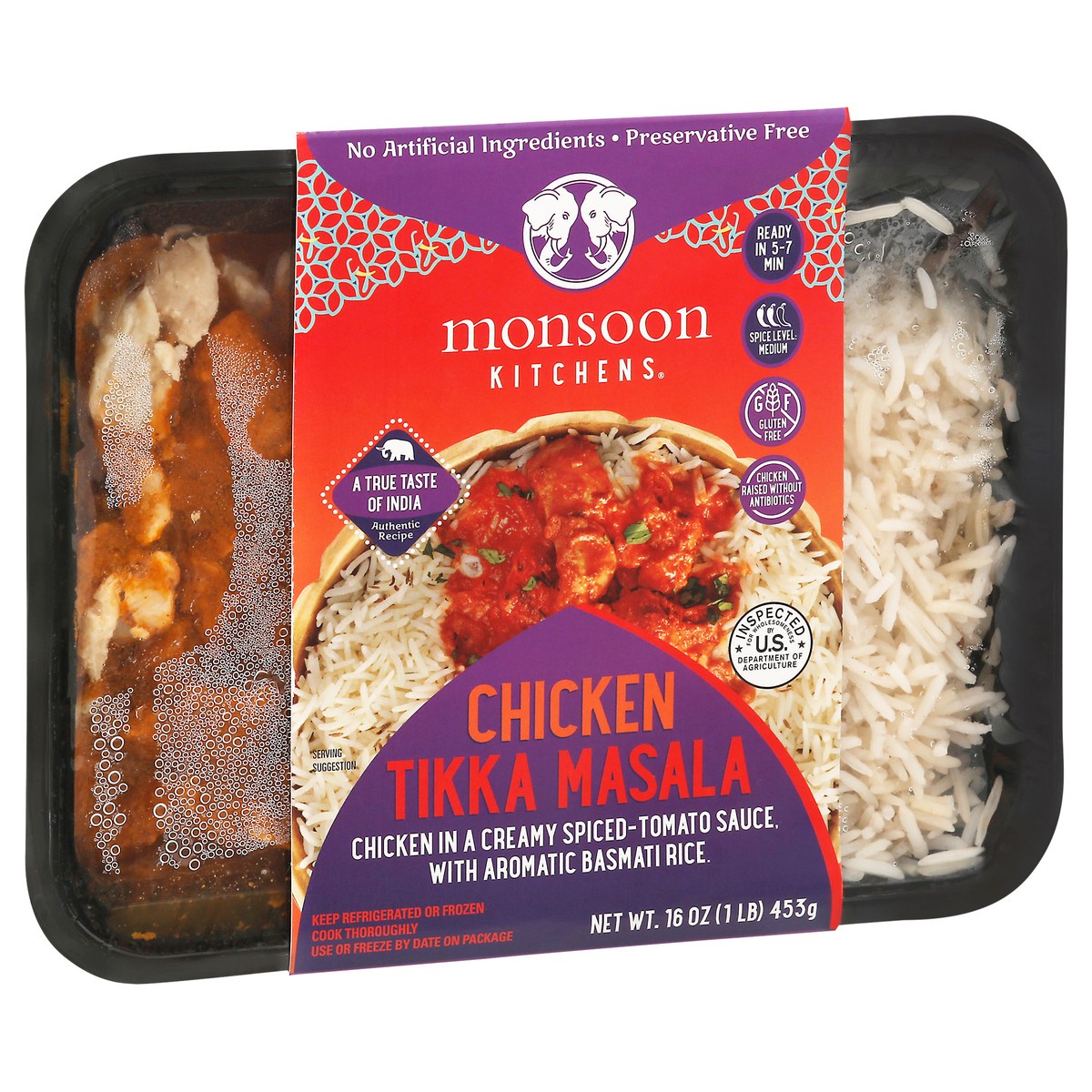 A true taste of India. Authentic recipe. Ready in 5-7 min. Chicken raised without antibiotics.