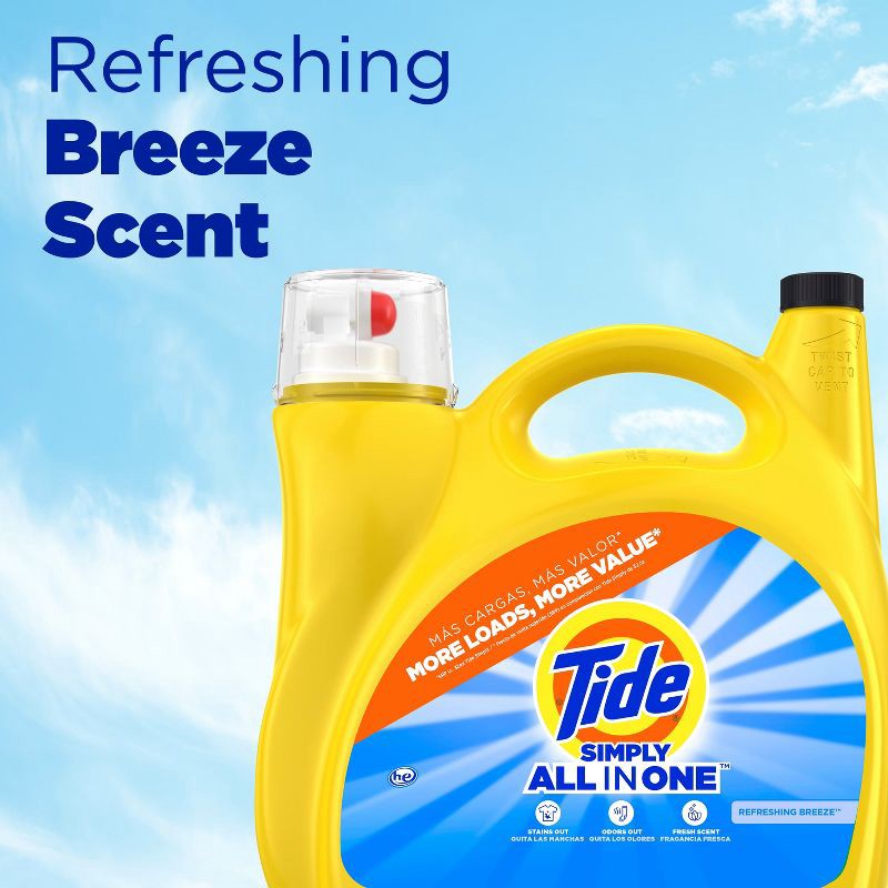 Experience the right clean at just the right price with Tide Simply All-In-One. Tide Simply All-In-One Liquid Laundry Detergent fights dirt and tough odors deep in the fibers of your clothes. That mea…