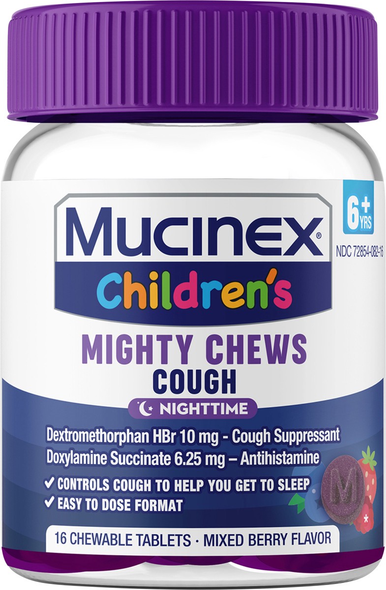 Introducing new Mucinex Children's Mighty Chews Cough Nighttime - the first and only medicated cough relief chewable tablets* made with kids in mind. These kid-friendly mixed berry flavored chewable t…