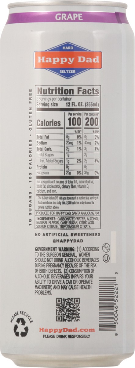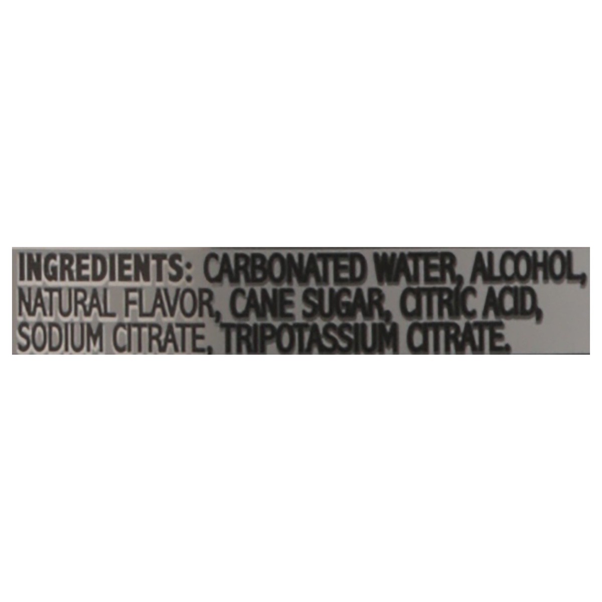 Carbonated Water, Alcohol, Natural Flavor, Cane Sugar, Citric Acid, Sodium Citrate, Tripotassium Citrate.