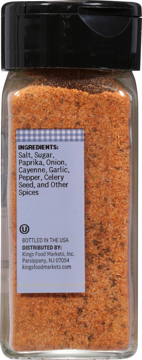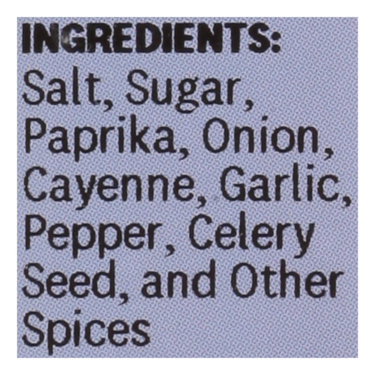 Salt, Sugar, Paprika, Onion, Cayenne, Garlic, Pepper, Celery Seed, and Other Spices.