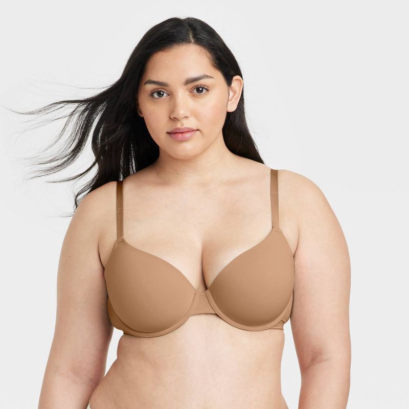 Women's Lightly Lined Demi T-Shirt Bra - Auden™ Caramel 34D: Underwire, Adjustable Straps