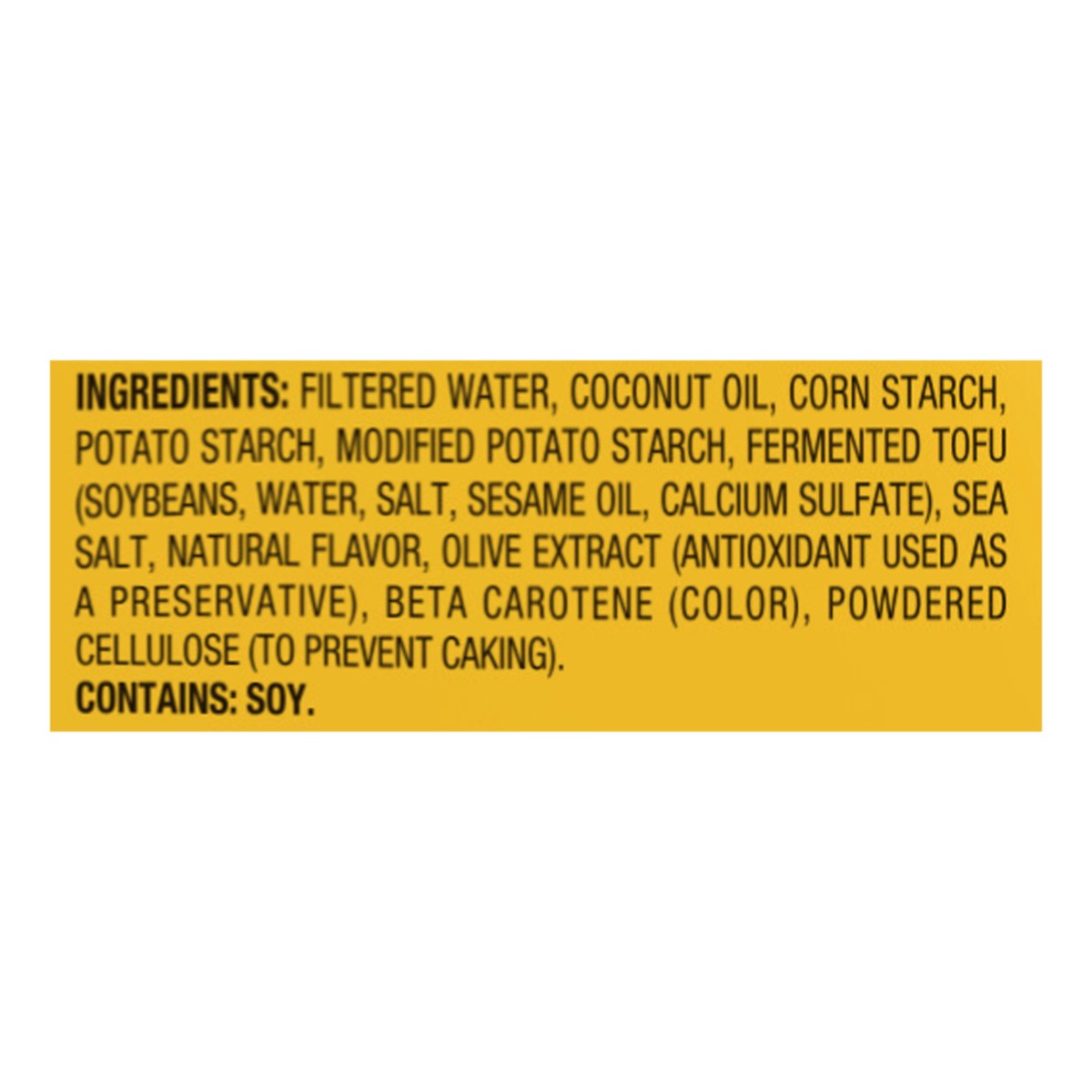FILTERED WATER; COCONUT OIL; CORN STARCH; MODIFIED POTATO STARCH; MODIFIED TAPIOCA STARCH; SEA SALT; FERMENTED TOFU (SOYBEANS; WATER; SALT; SESAME OIL); NATURAL FLAVOR; OLIVE EXTRACT (ANTIOXIDANT USED…
