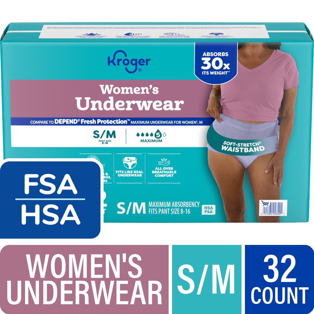 Kroger® Adult Incontinence Underwear for Women Maximum Absorbency Small Medium ensures all dayˆ freshness and odor control. Crafted for a snug fit with a Soft-Stretch® Waistband, these underwear fit p…