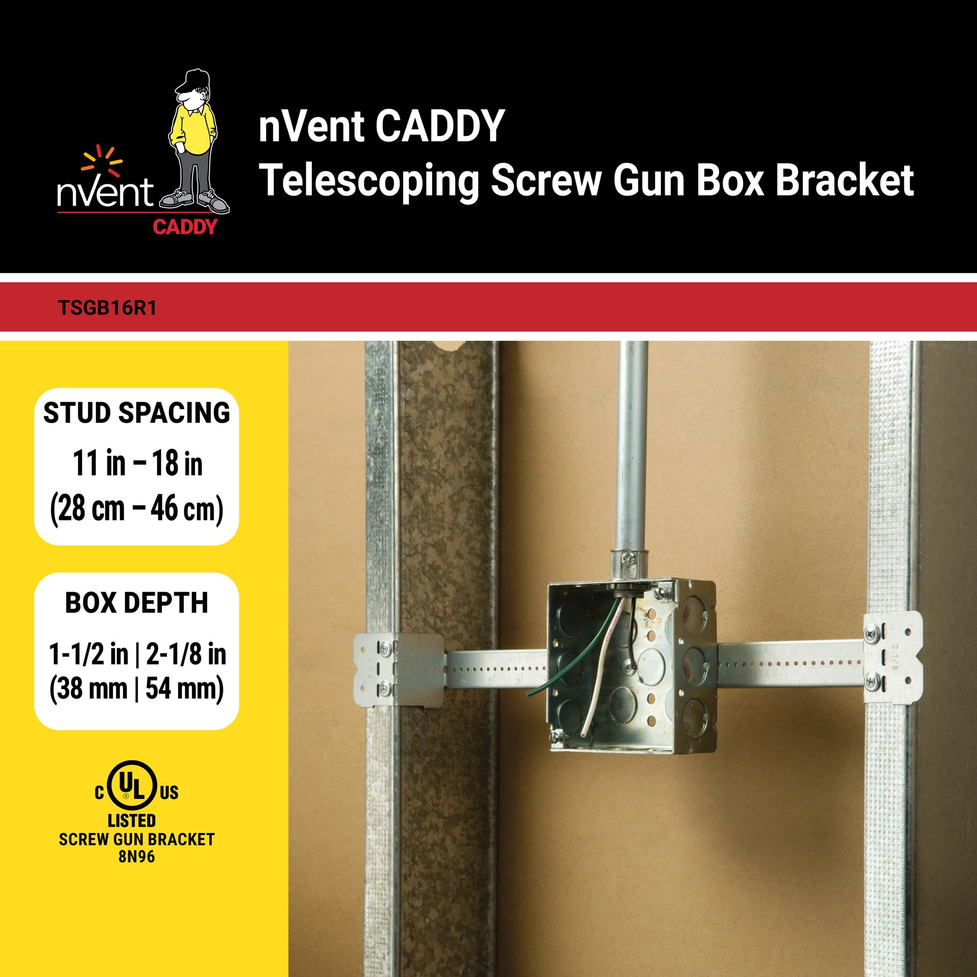 Caddy telescoping bracket. Steel construction. TSGB24 base product. Flexibility with box mount location.