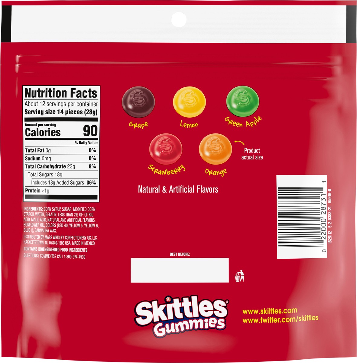 - Contains one (1) 12-ounce sharing size resealable bag of SKITTLES Gummies Original Gummy CandyGet ready to taste the rainbow and enjoy the bright flavors of strawberry, orange, grape, lemon, and green apple gummy candyShare this bag of SKITTLES Original Gummy Candy at game nights or as a midday snackAdd a burst of fruity flavor to your candy dish with these colorful gummiesExperience the bold taste of SKITTLES Original Gummy Candy on your next on the go adventure