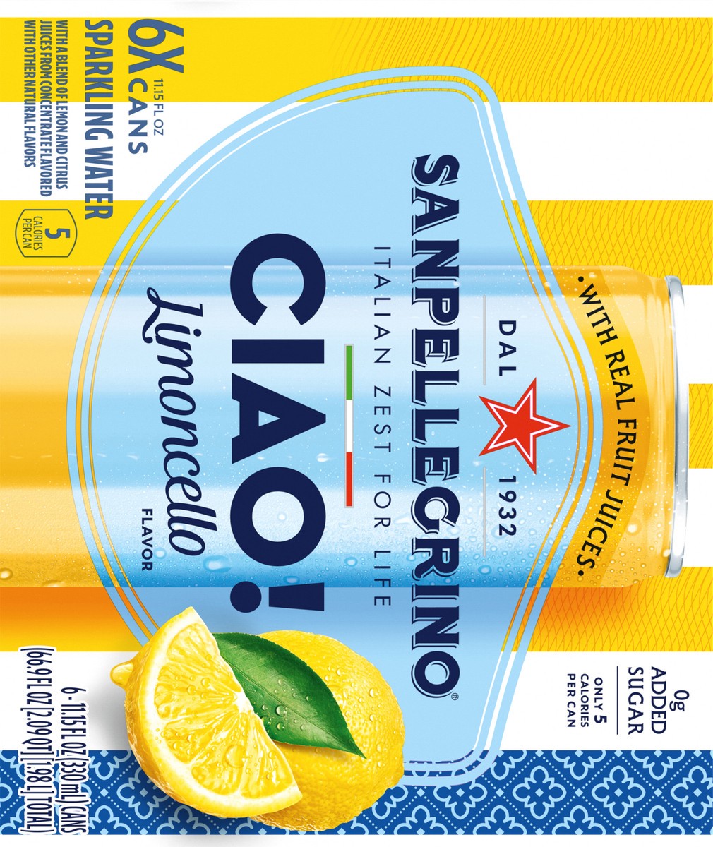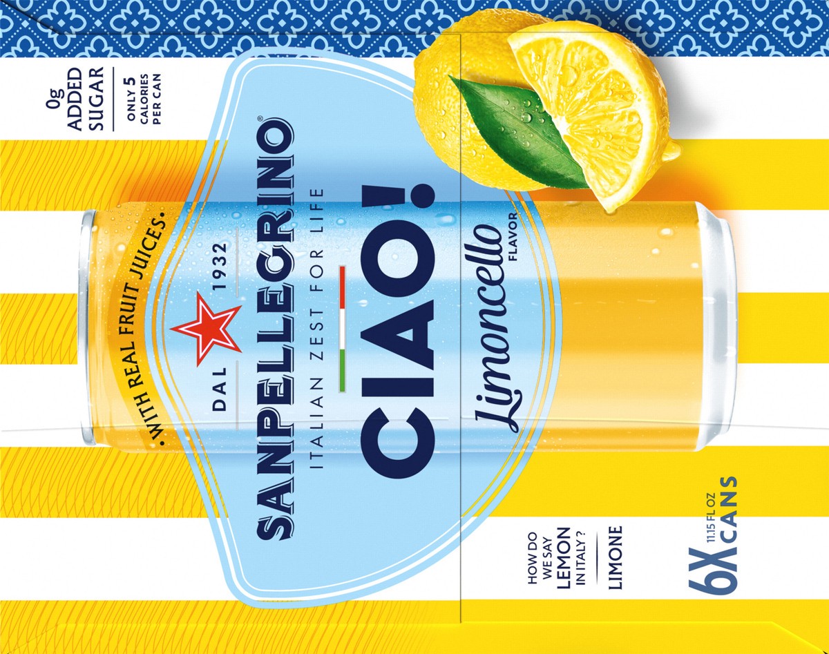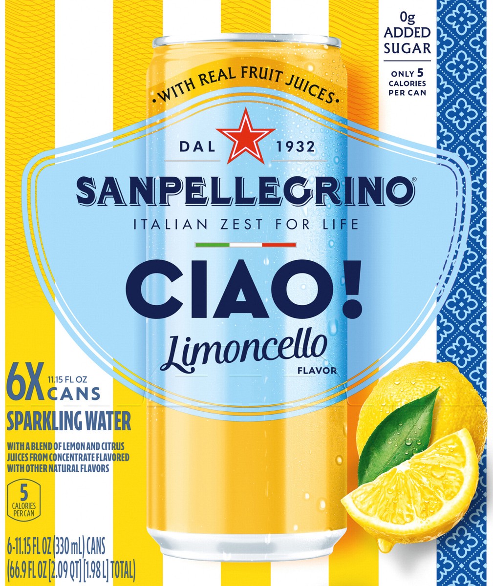 San Pellegrino CIAO! Limoncello Flavored Sparkling Water, Italian Sparkling Water, 6PK