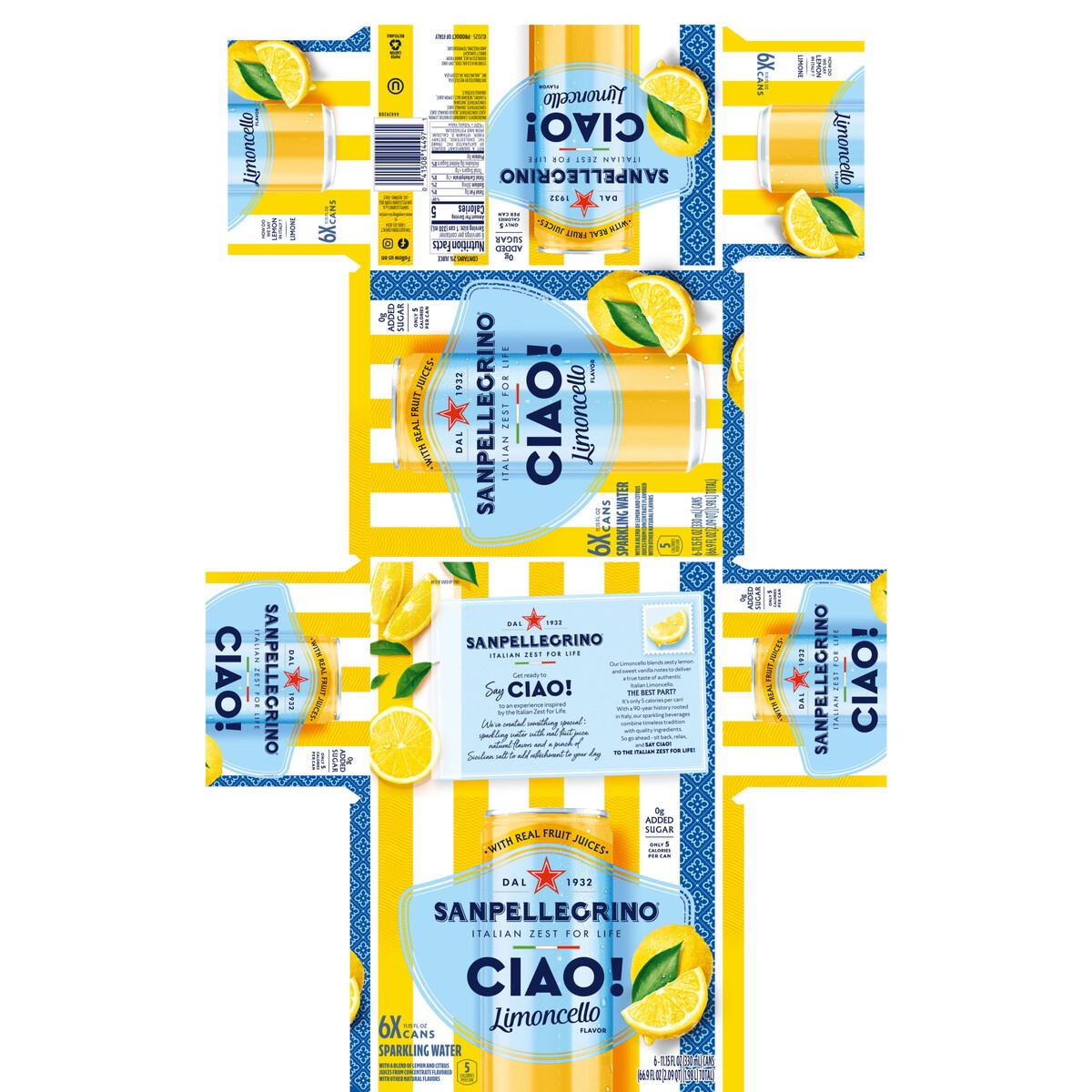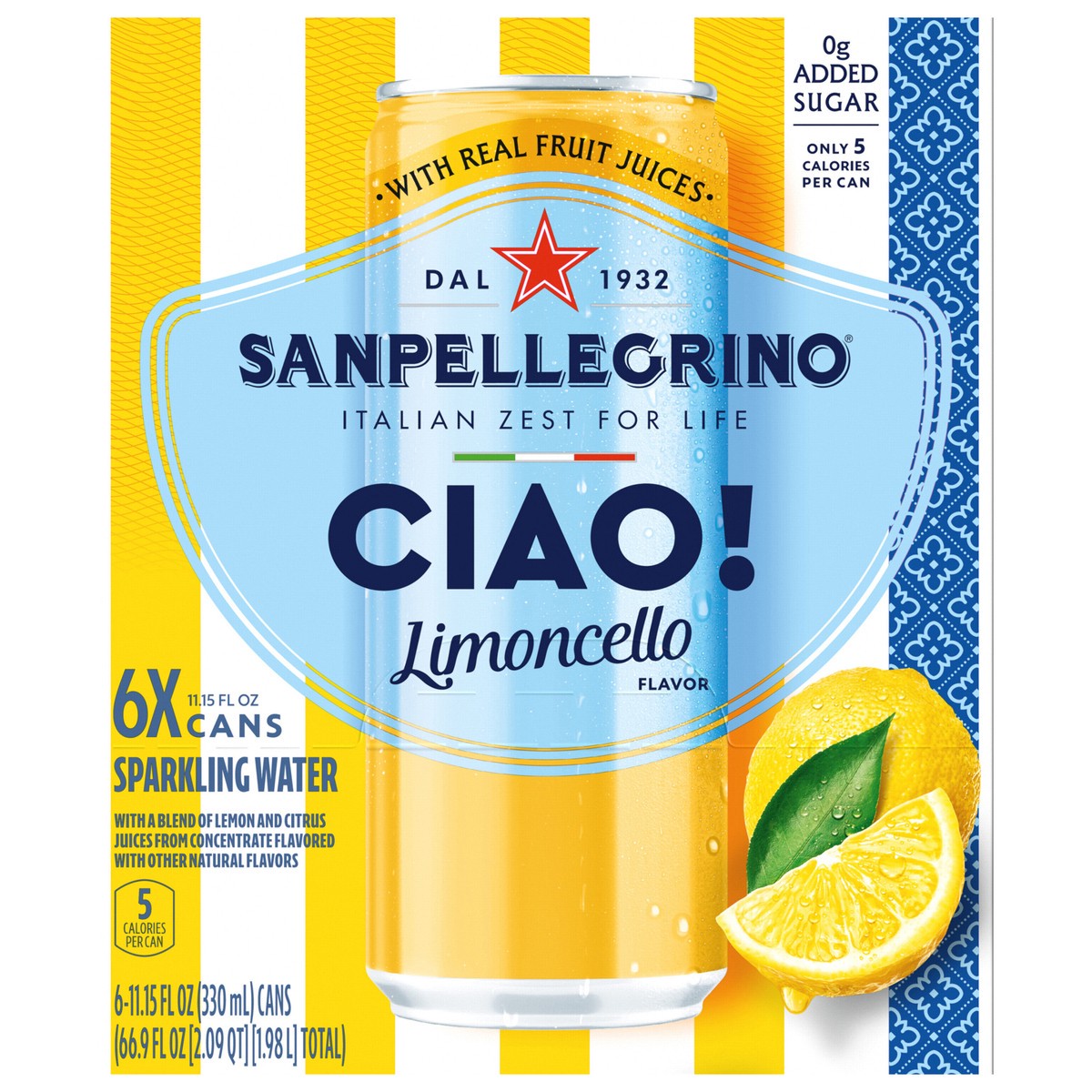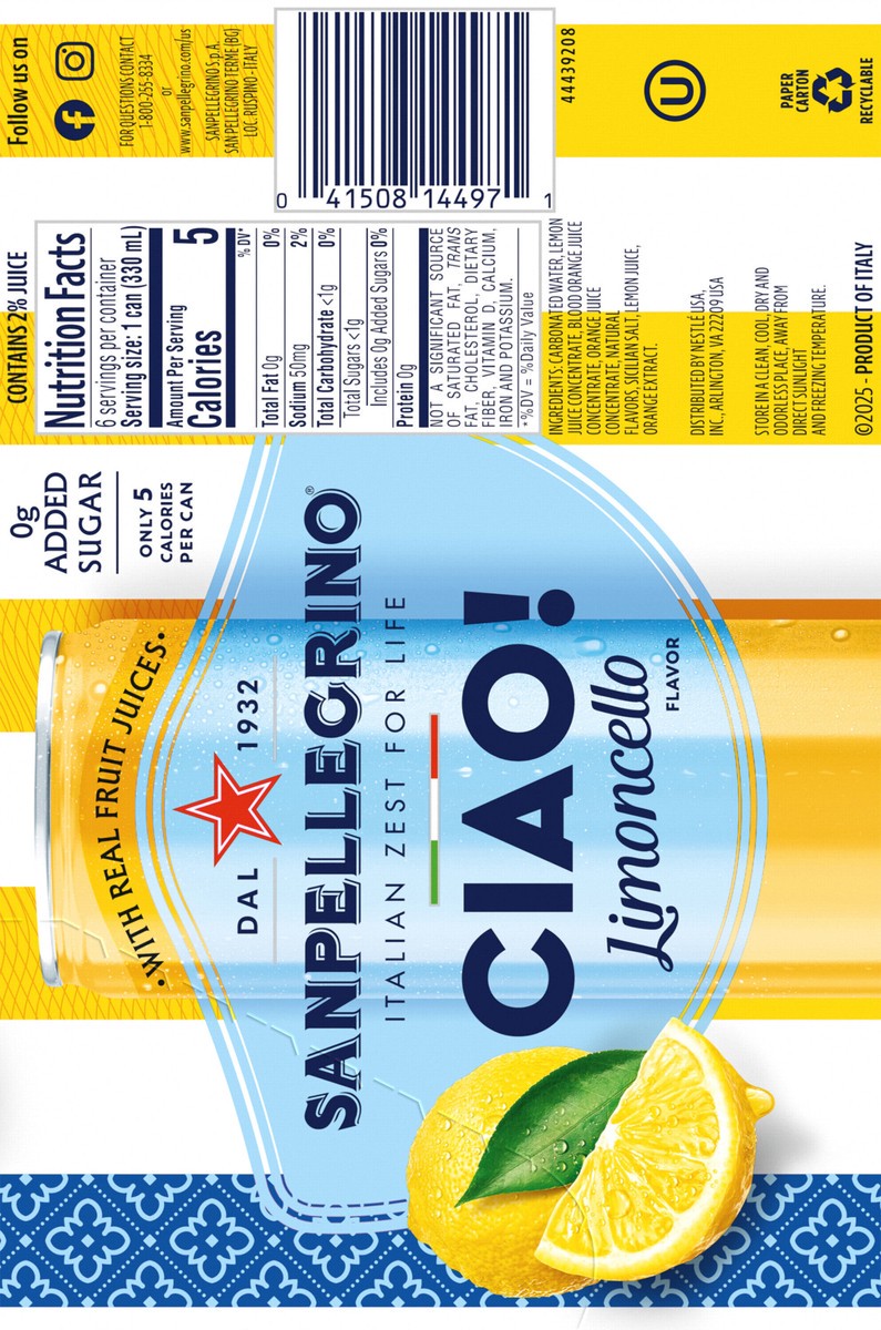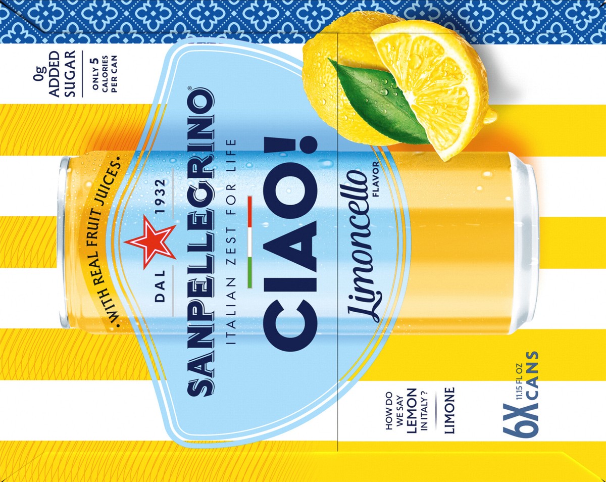San Pellegrino CIAO! Limoncello Flavored Sparkling Water, Italian Sparkling Water, 6PK