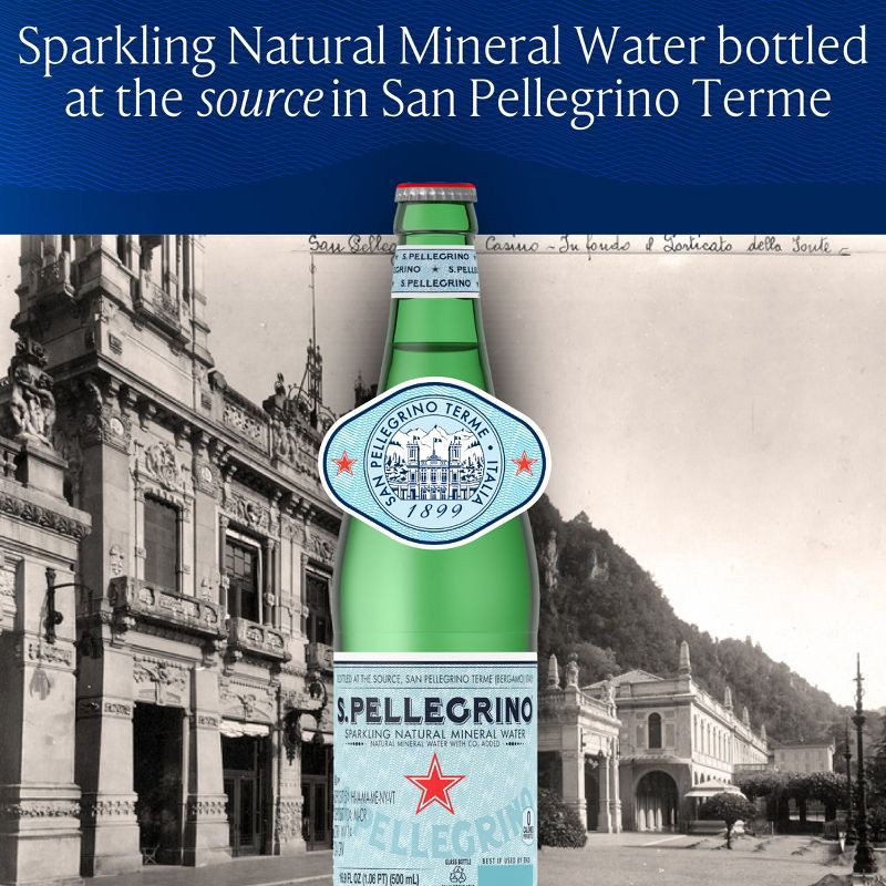 Embrace the spirit of Italian living with S.Pellegrino Sparkling Natural Mineral Water. While moving through the San Pellegrino Terme area at the foothills of the Italian Alps, this water, travels thr…