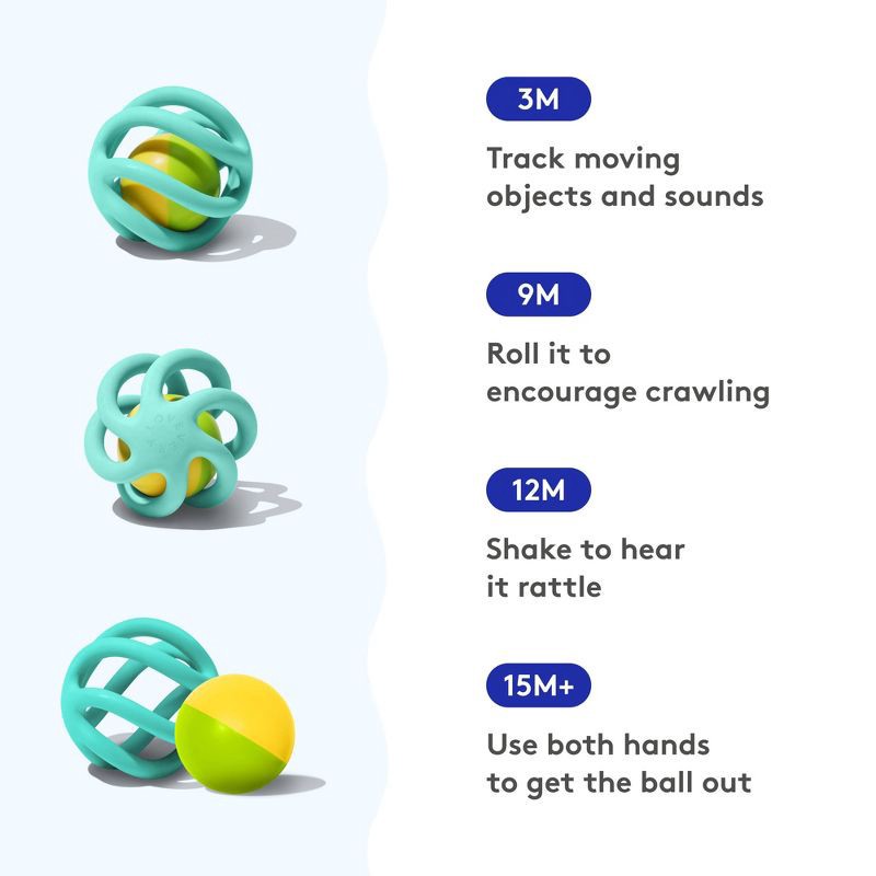 - Removable rattle ball for a fun motor challenge