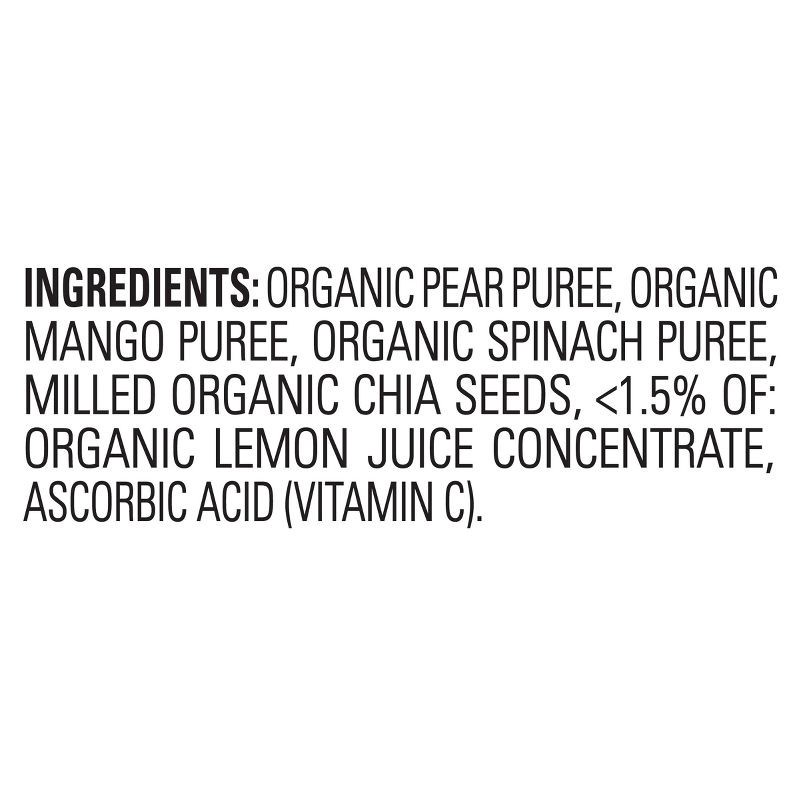 ORGANIC PEAR PUREE, ORGANIC MANGO PUREE, ORGANIC SPINACH PUREE, MILLED ORGANIC CHIA SEEDS, < 1.5% OF: ORGANIC LEMON JUICE CONCENTRATE, VITAMIN C (ASCORBIC ACID).