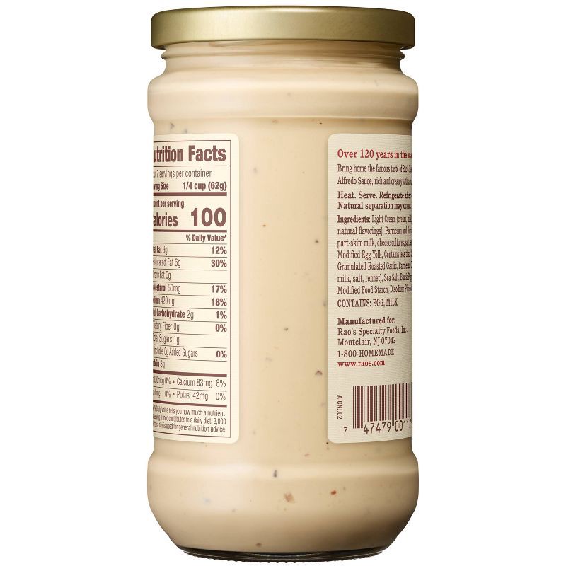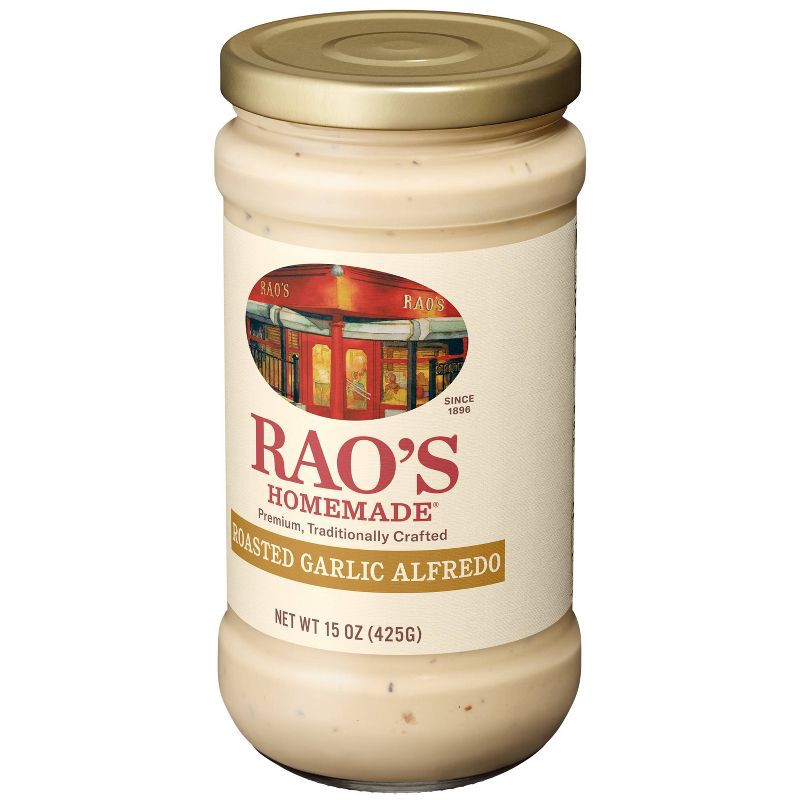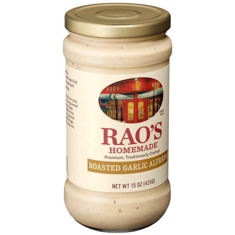- Bring home the famous taste of Rao's with this 15 ounce jar of Rao's Homemade Roasted Garlic Alfredo Sauce.