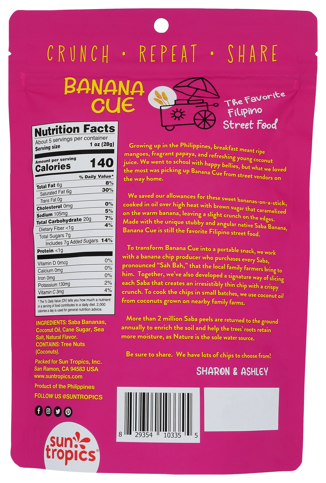 Lightly glazed, shareable chips with a unique crispy crunch. Firm green Philippine Saba bananas are hand-harvested on family farms, thinly sliced, then kettle-cooked in small batches.