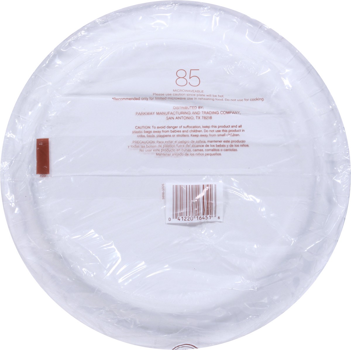 25.5 cm diameter. Microwaveable (Recommended only for limited microwave use in reheating food. Do not use for cooking). Please use caution since plate will be hot.