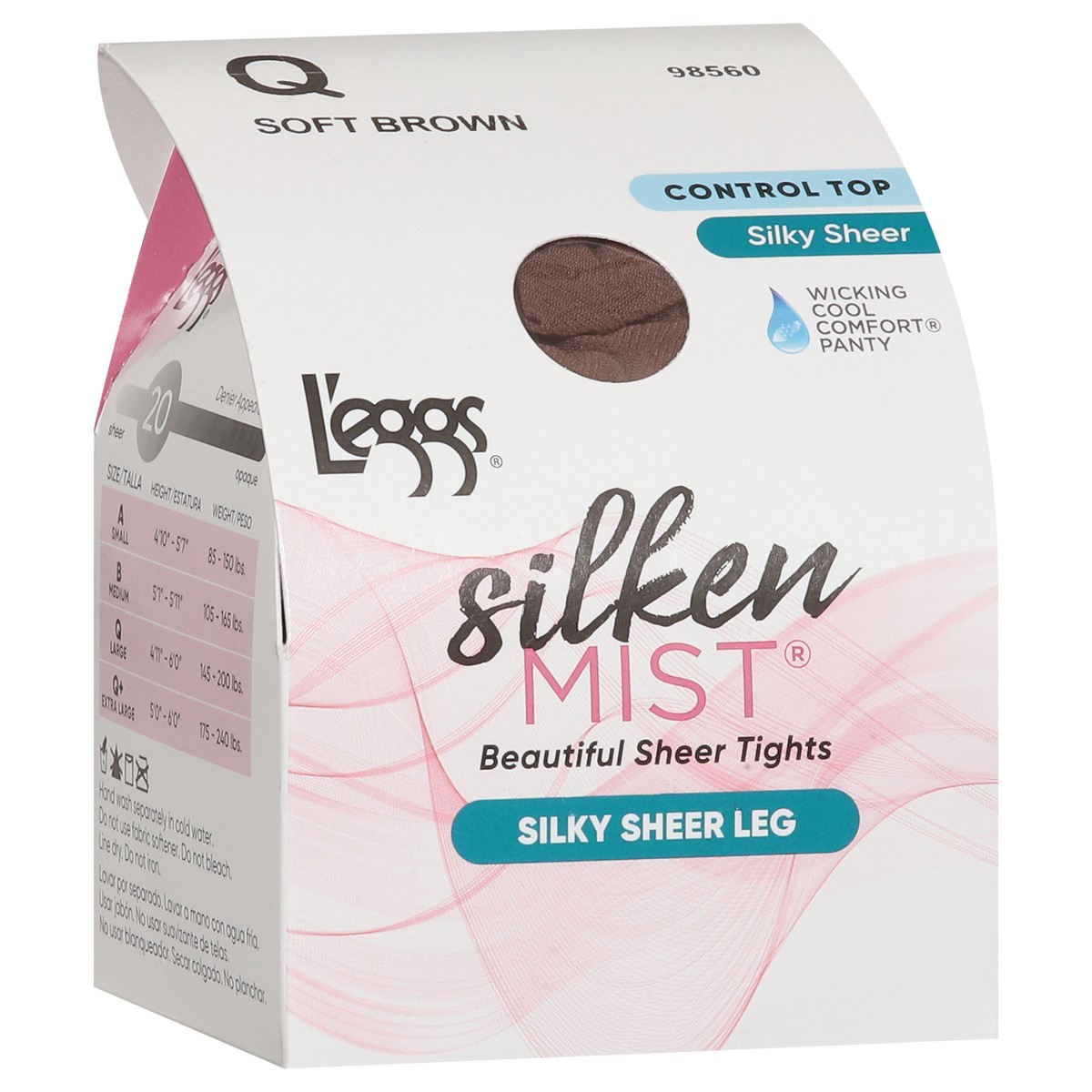 L'Eggs Silken Mist Silky Sheer Cool Comfort Control Top Sheer Toe