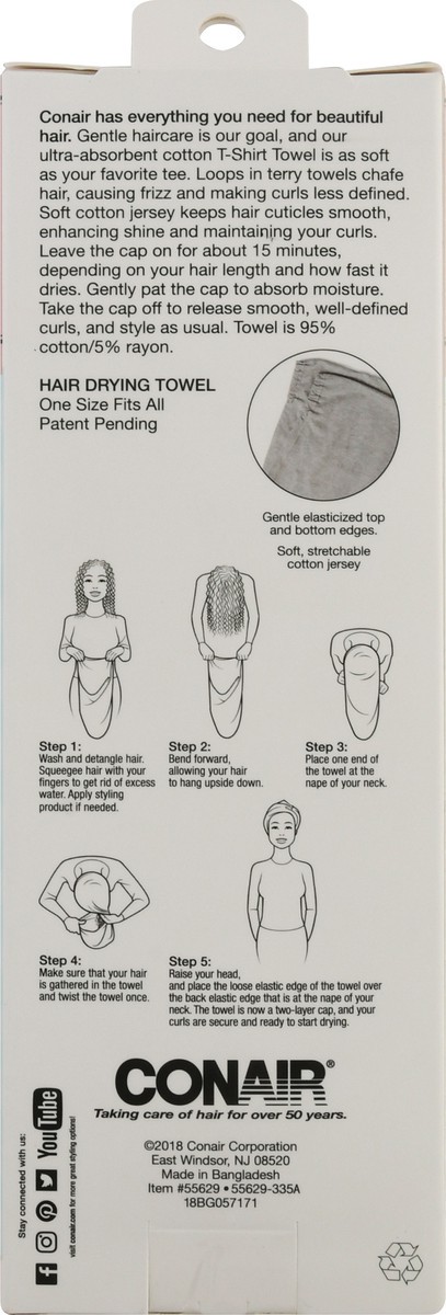 Ultra-absorbent, frizz-free results. Save your curls! Conair has everything you need for beautiful hair. Gentle haircare is our goal, and our ultra-absorbent cotton t-shirt towel is as soft as your fa…
