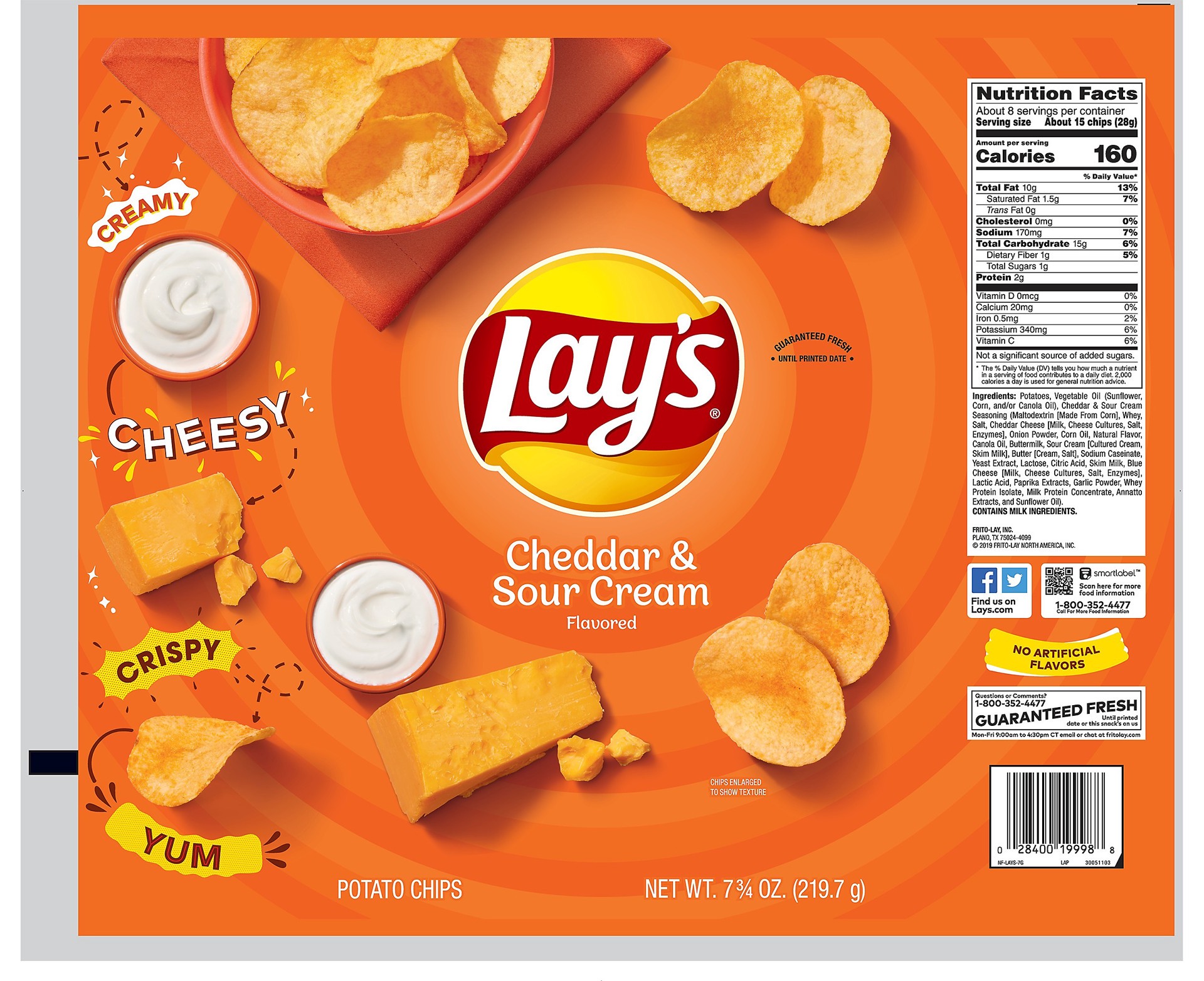 Lays Potato Chips Cheddar & Sour Cream - 7.75 Oz