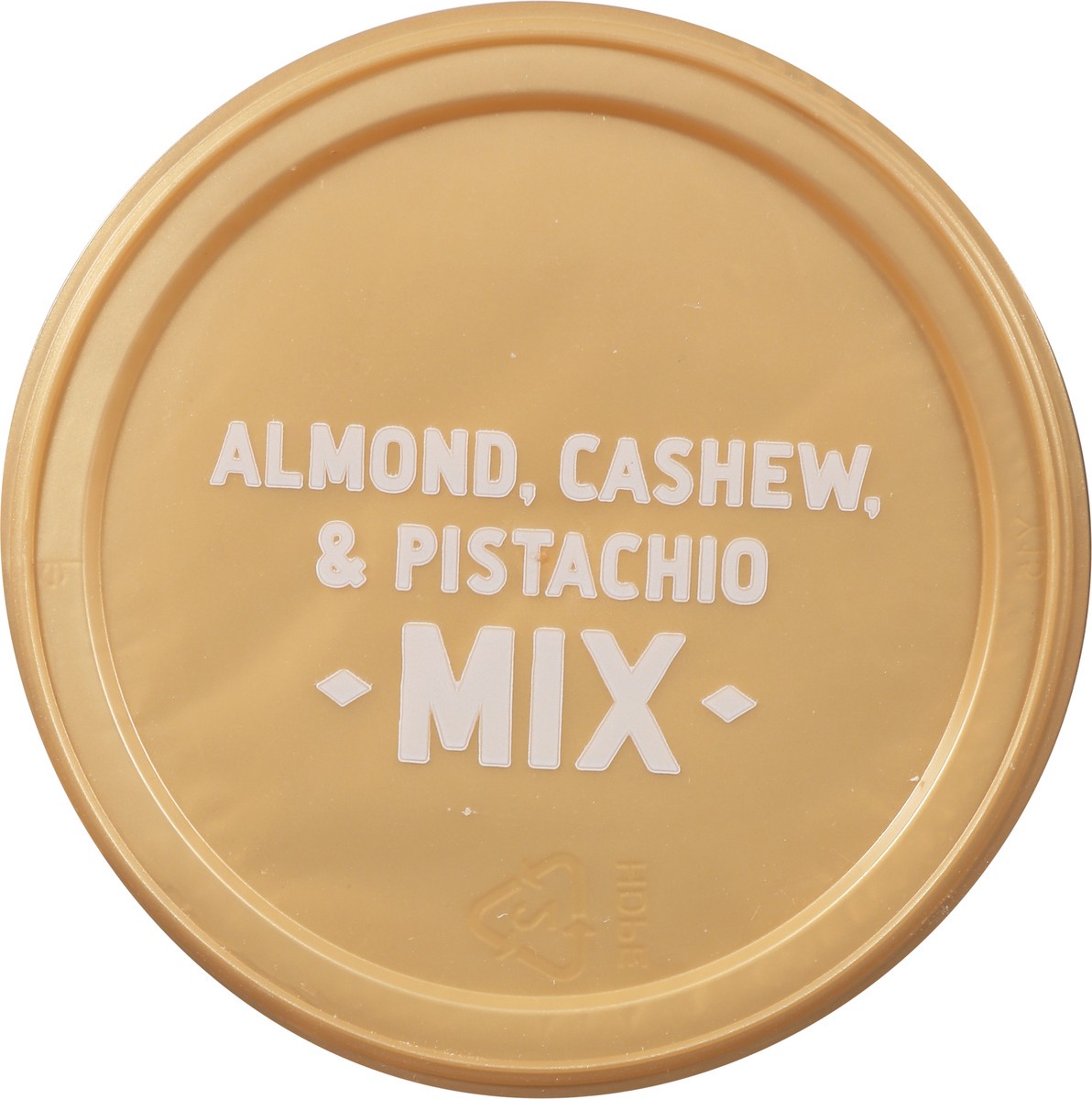 Almonds, Cashews, Pistachios, Sugar, Vegetable Oil ( Almond, Canola, Cottonseed, Peanut, Safflower, Soybean and/or Sunflower), Honey, Less than 2% of Maltodextrin, Modified Potato Starch, Salt and Xan…