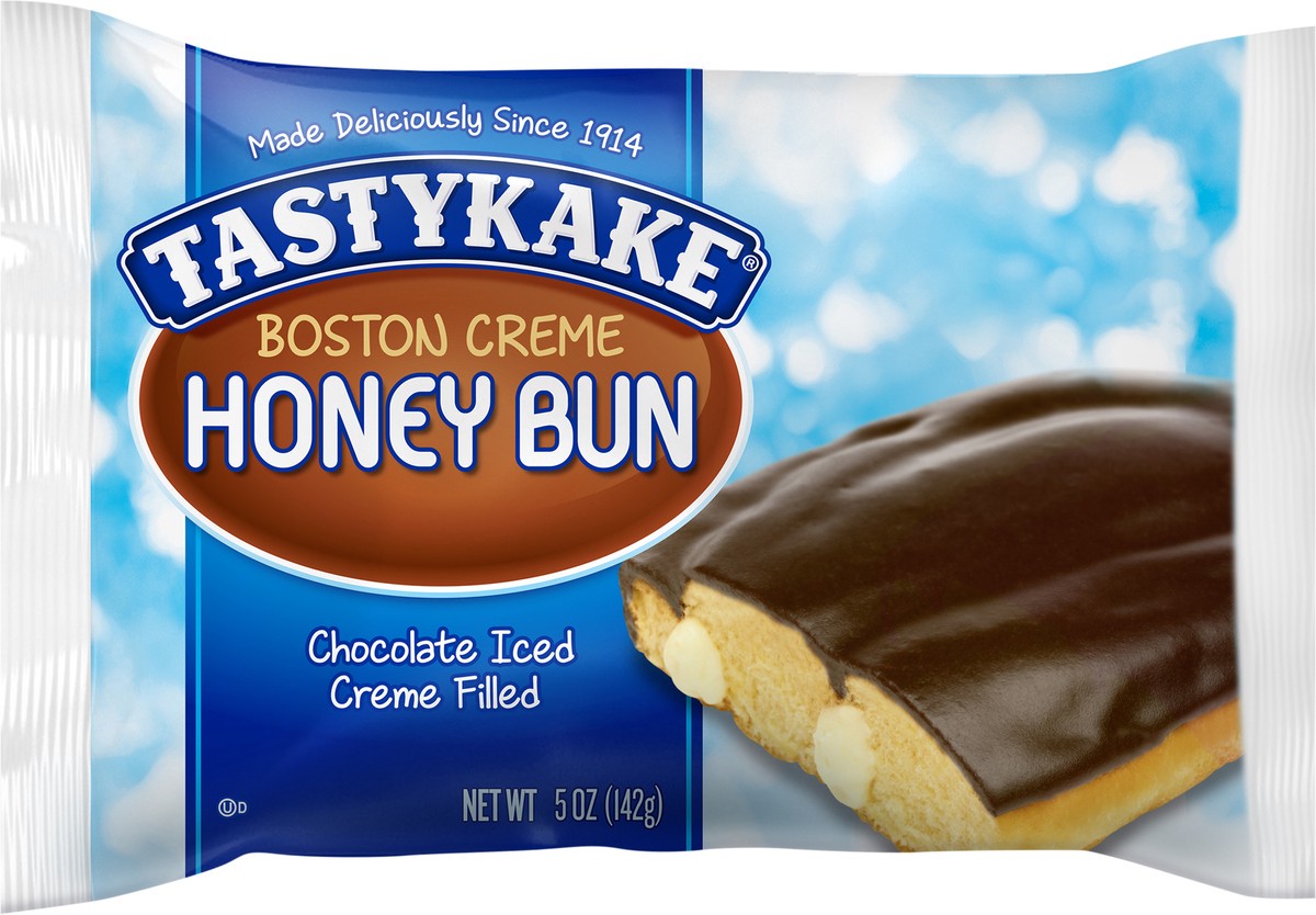Tastykake Boston Creme Honey Buns are crafted with a sweet, Boston creme filling and decadent chocolate icing, making them melt-in-your-mouth delicious. No matter the time of day, Tastykake Boston Cre…