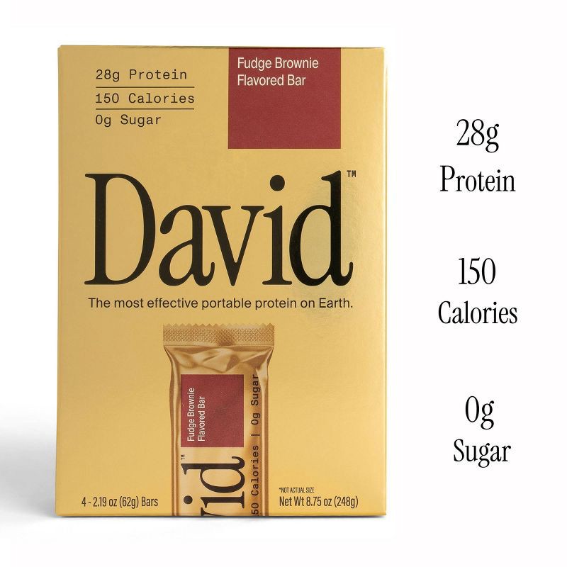 David Protein Gold Fudge Brownie High Protein Bars - 28g Protein - 4ct: Creamy Texture, Ready to Eat, 62g Net Weight