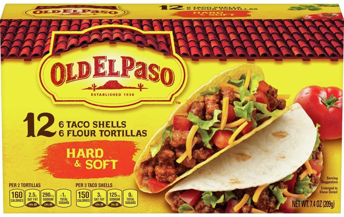 Old El Paso Taco Shell & Tortillas Flour Hard & Soft Box 12 Count - 7.4 Oz