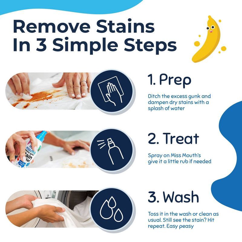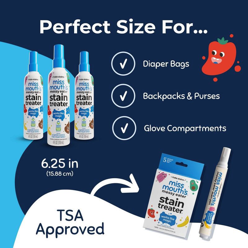 - A PARENTAL ESSENTIAL: Our 4 oz bottle of Miss Mouth's Messy Eater Stain treater is the perfect size for diaper bags, purses, and on-the-go messes.