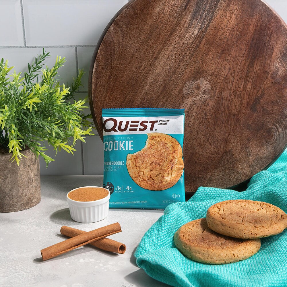 - YOU DESERVE A COOKIE: The Quest Snickerdoodle Protein Cookies provide you with a sweet, soft & chewy cookie with 15g protein, 4g net carbs and less than 1g of sugar.