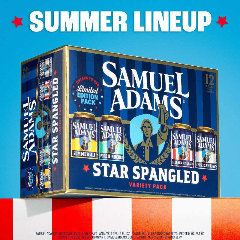 Celebrate America's 250th anniversary with the Samuel Adams Star Spangled Variety Pack — a limited release lineup crafted for summer's biggest moments. This festive mix features four refreshing styles…