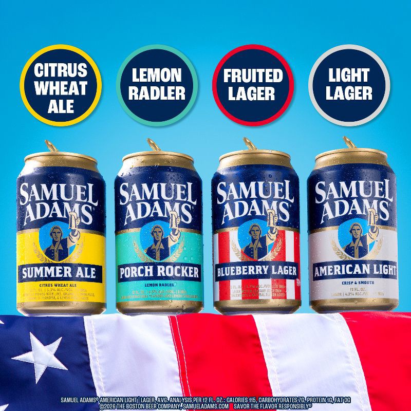 - Includes 4 refreshing Sam Adams beers: Summer Ale Citrus Wheat Ale, Porch Rocker Lemon Radler, American Light Lager, and Blueberry Lager