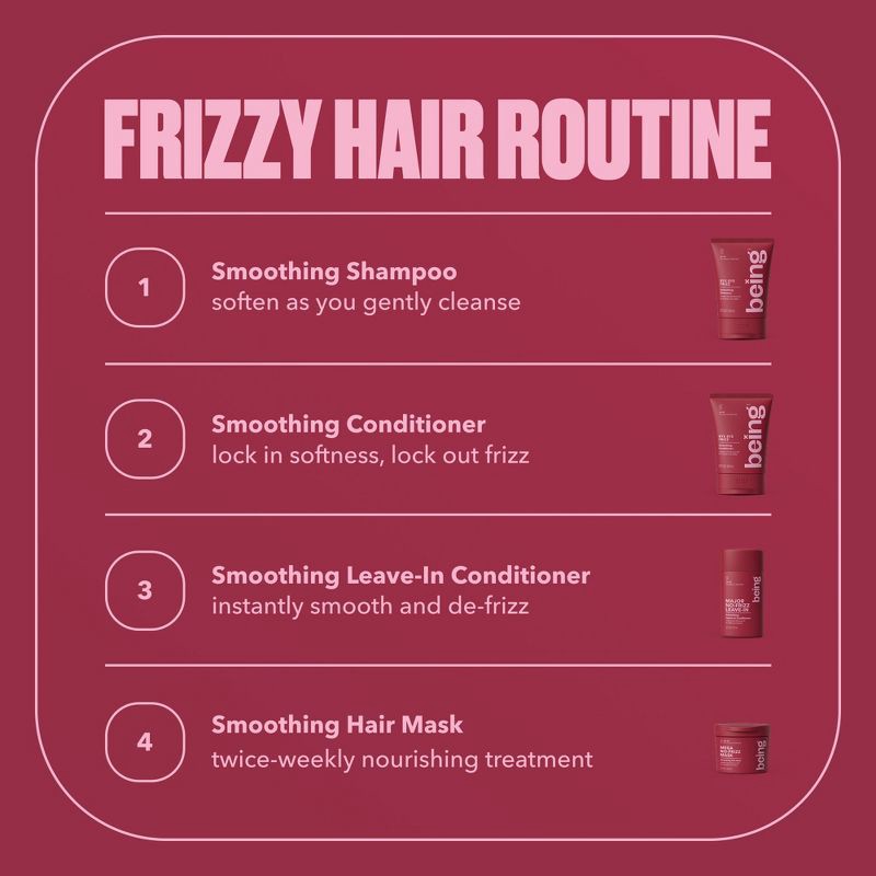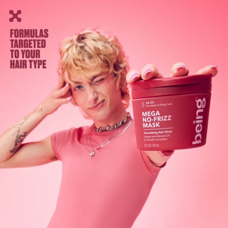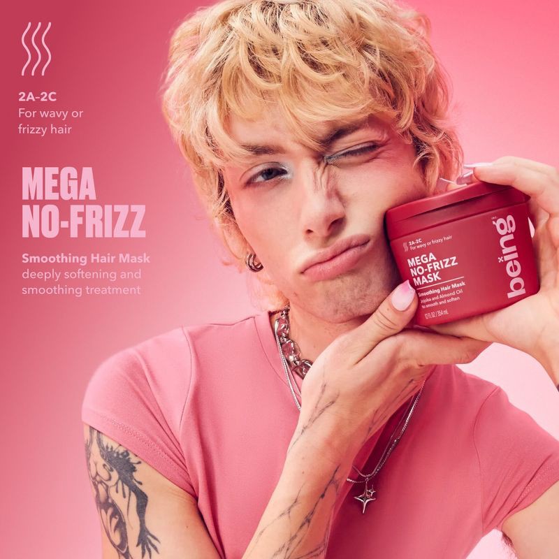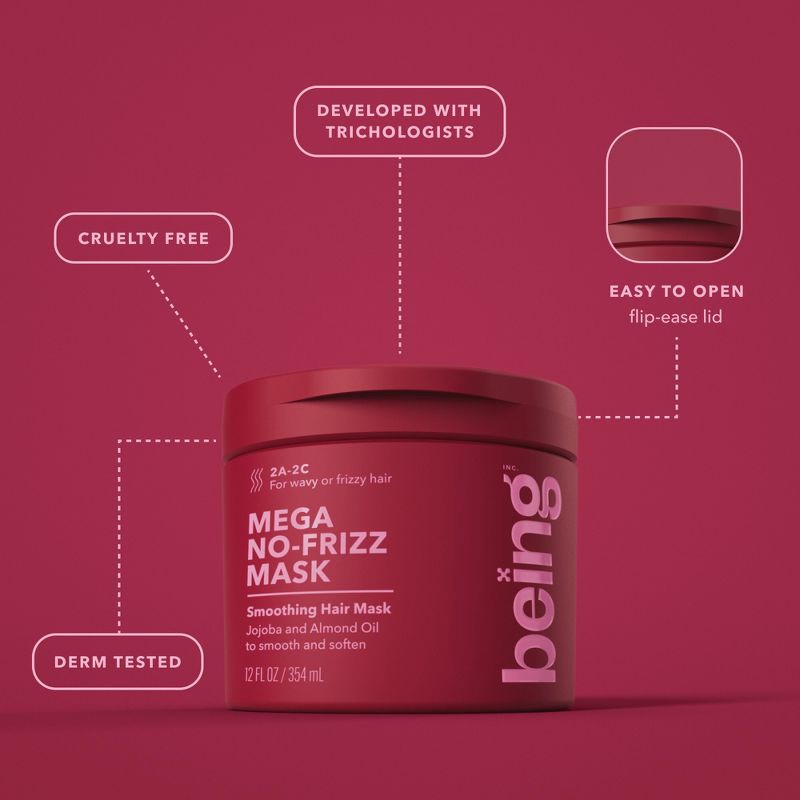 Being MEGA NO-FRIZZ Smoothing Hair Mask works to soften and smooth wavy and frizzy hair, especially types 2A-2C, with nourishing natural ingredients. This dermatologically tested, sulfate-free and sil…