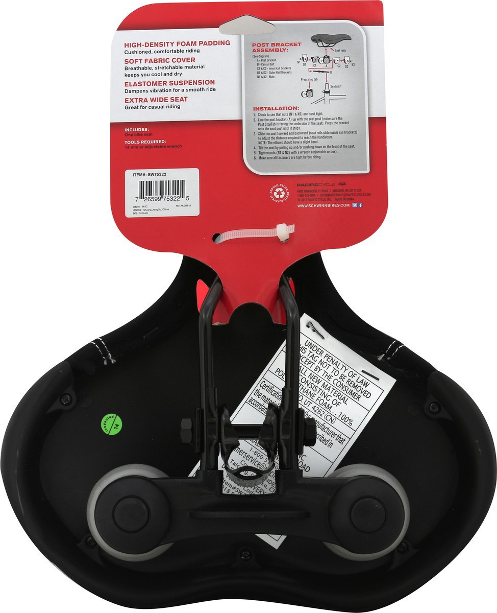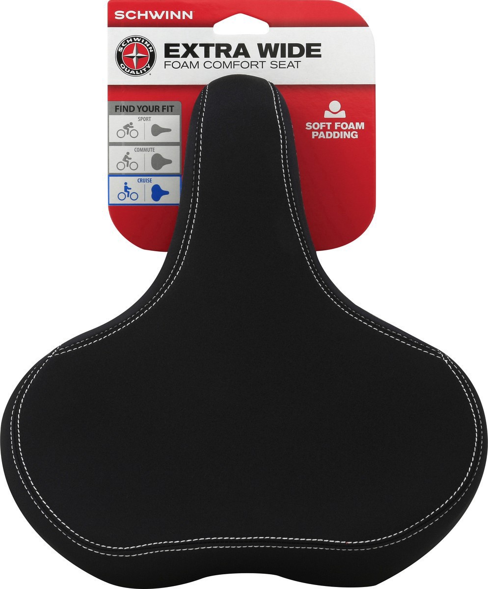 Includes: One bike seat. Schwinn quality. Soft foam padding. Find Your Fit: sport; commute; Cruise. High-Density Foam Padding: Cushioned, comfortable riding. Soft Fabric Cover: Breathable, stretchable…