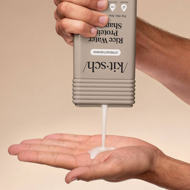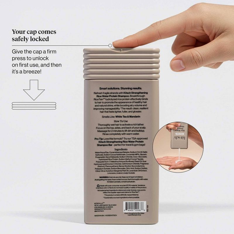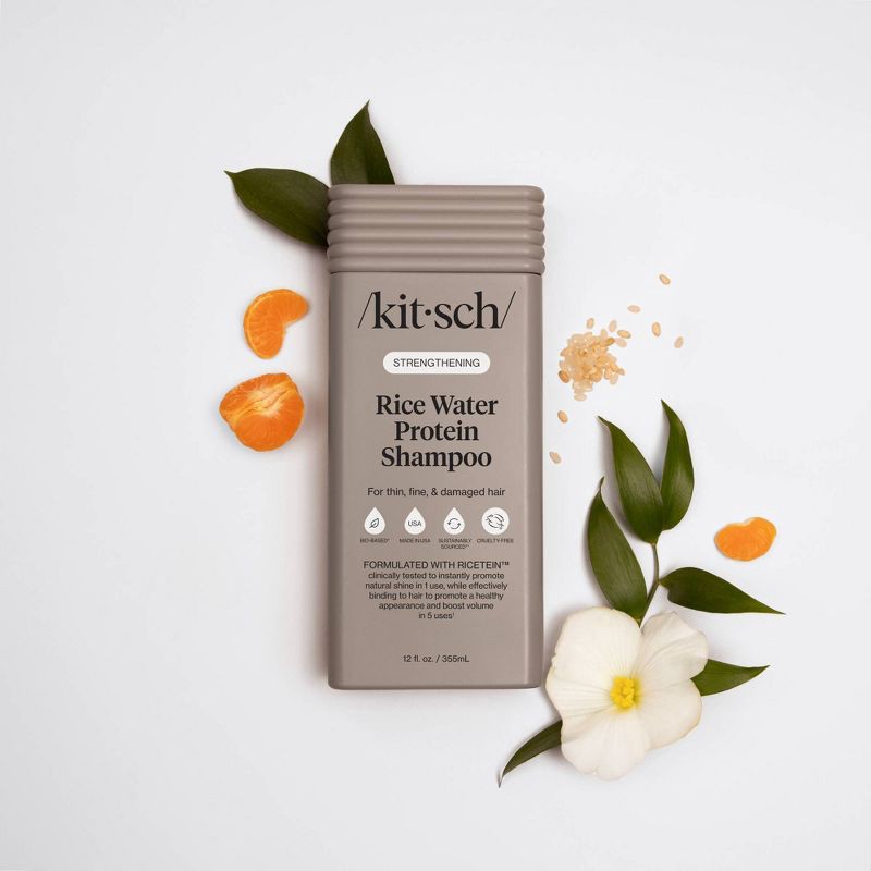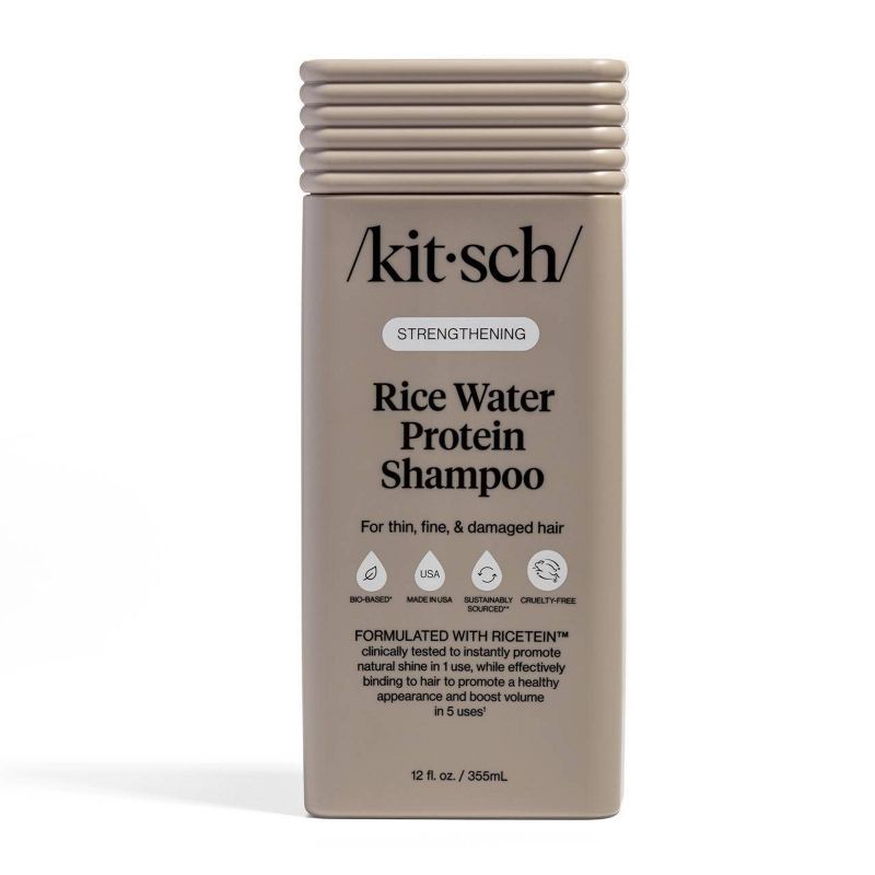 The Kitsch Strengthening Rice Water Protein Shampoo refreshes and strengthens fragile strands. Formulated with Rice Tein NPNF ® ️clinically tested to instantly promote natural shine in 1 use, while ef…