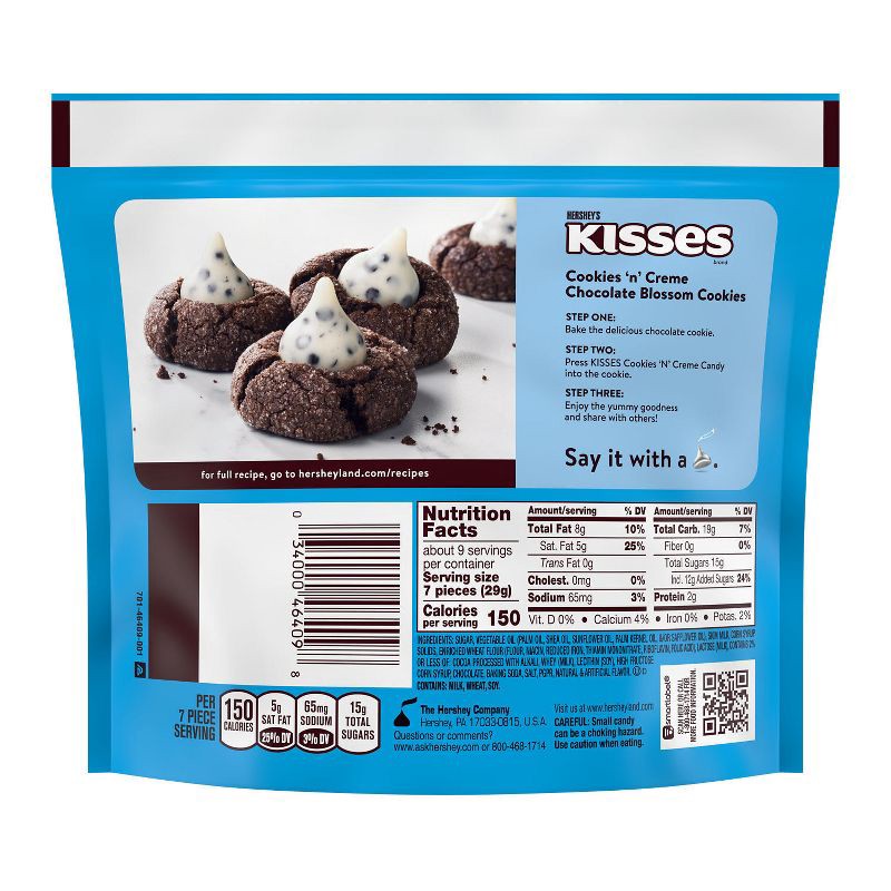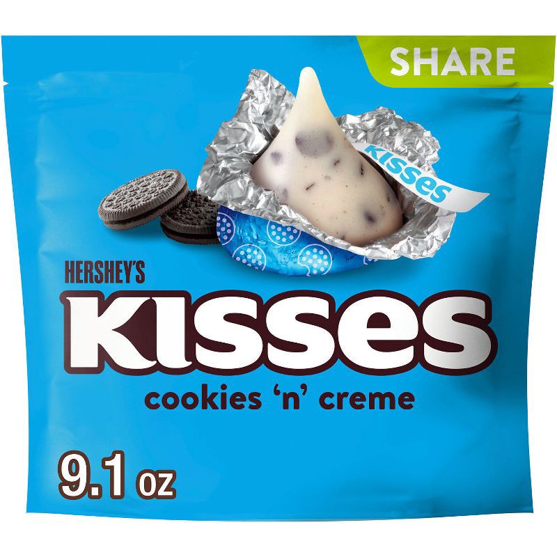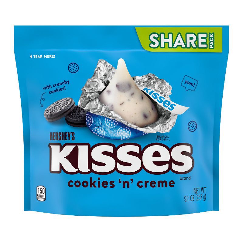 - Contains one (1) 9.1-ounce share pack of HERSHEY'S KISSES Cookies 'n' Creme Candy